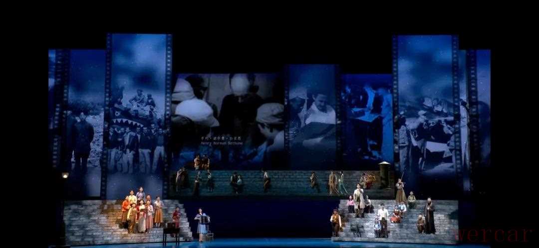 歌曲《红河谷》中,八路军总政治部电影团(又称延安电影团)成员吴印咸当年现场拍下的白求恩大夫手术场景呈现在观众面前,与现场演职人员的表演相结合,呈现出更好的舞台效果。