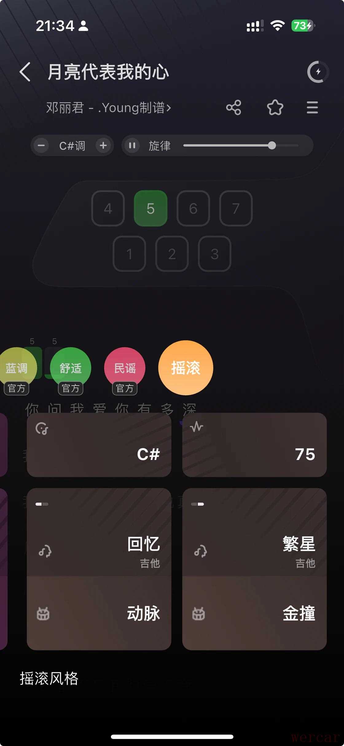 官方也提供了多种不同预设可供选择,设置好的这些风格不但可以在自由演奏时使用,也可以在使用 App 内曲谱弹奏时,点击右下角的「风格」按钮来快速切换,为歌曲赋予不一样的情感。比如在抒情的歌曲里换一个「摇滚」的风格,带来一种别样的反差感。