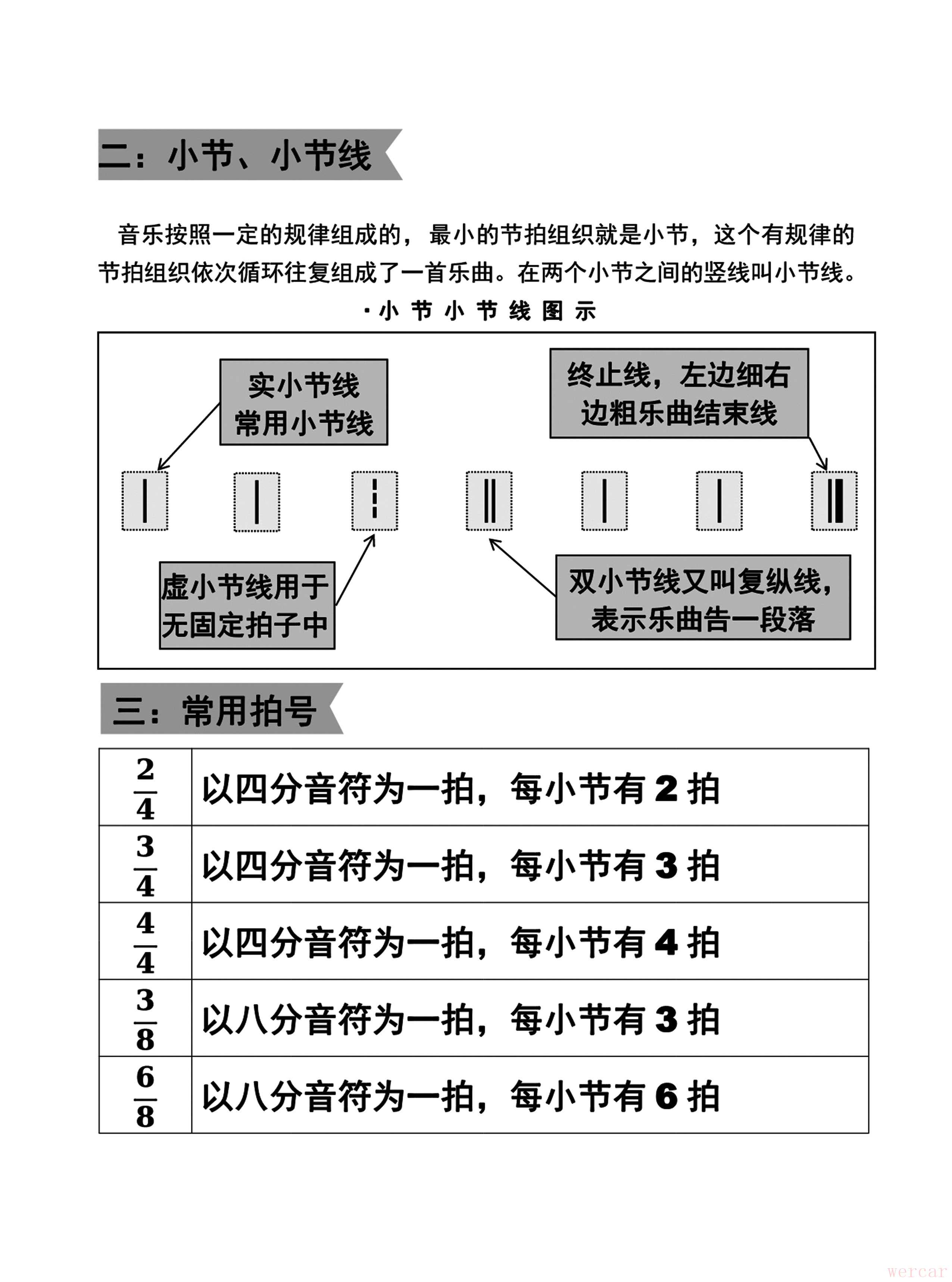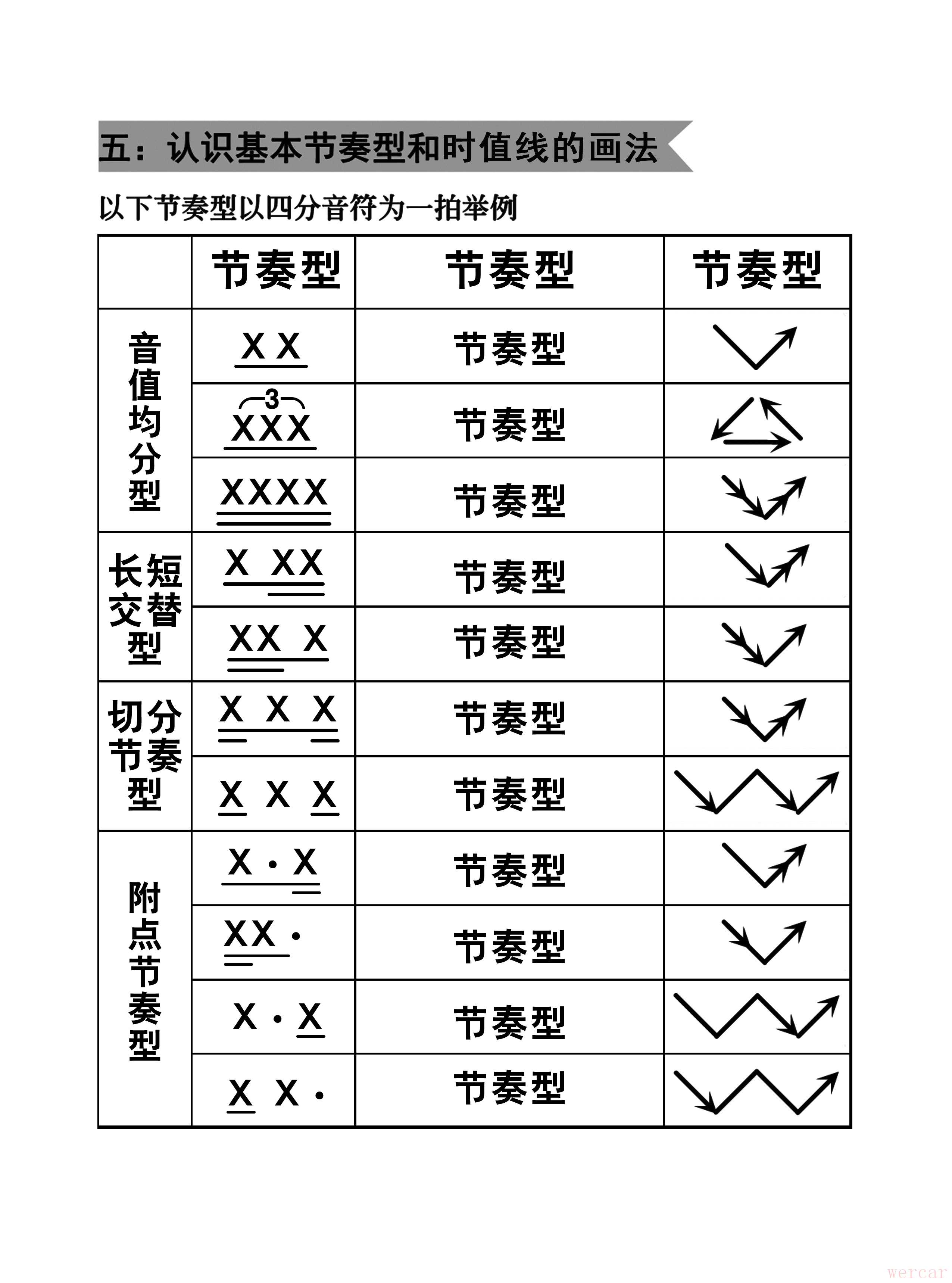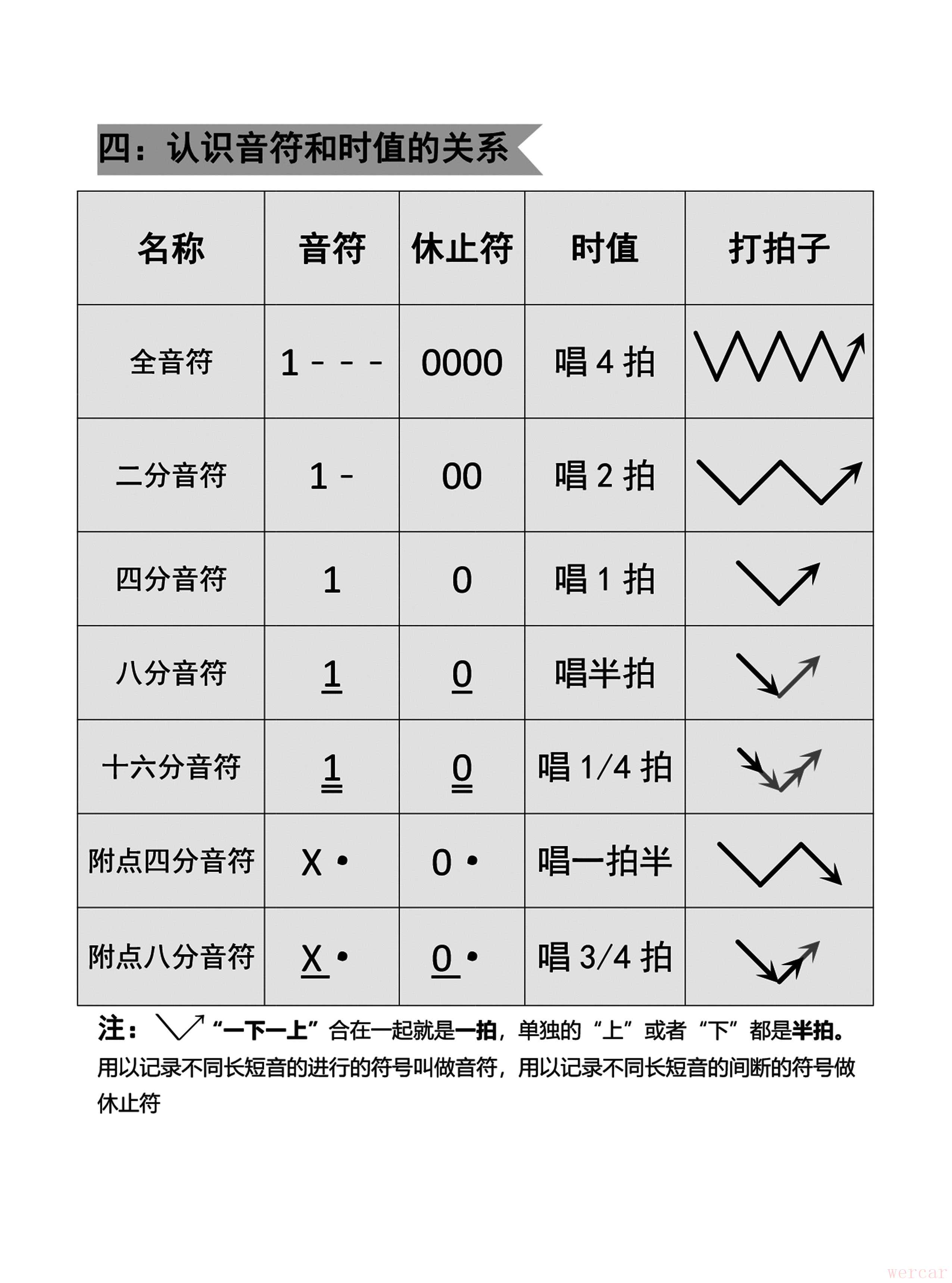 我们再来看一下音符的记谱法和时值关系以及如何打拍子