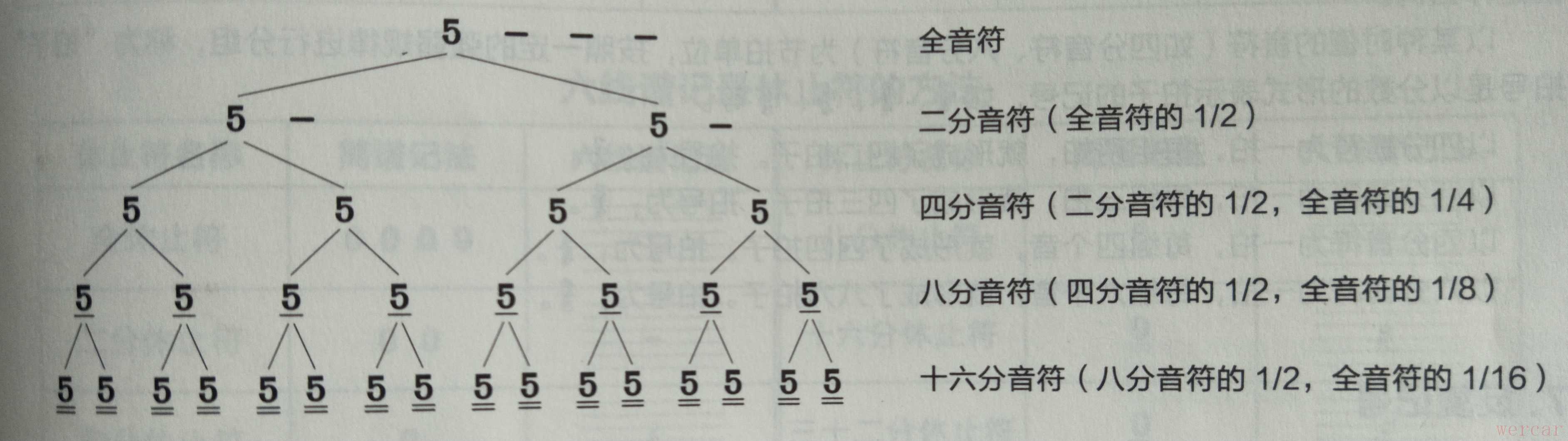 (3)在自然音符下方加的短横线称为“减时线”,增加一条“减时线”原四分音符变为八分音符(二分之一拍),增加两条变为十六分音符(四分之一拍),增加三条变为三十二分音符(八分之一拍)。