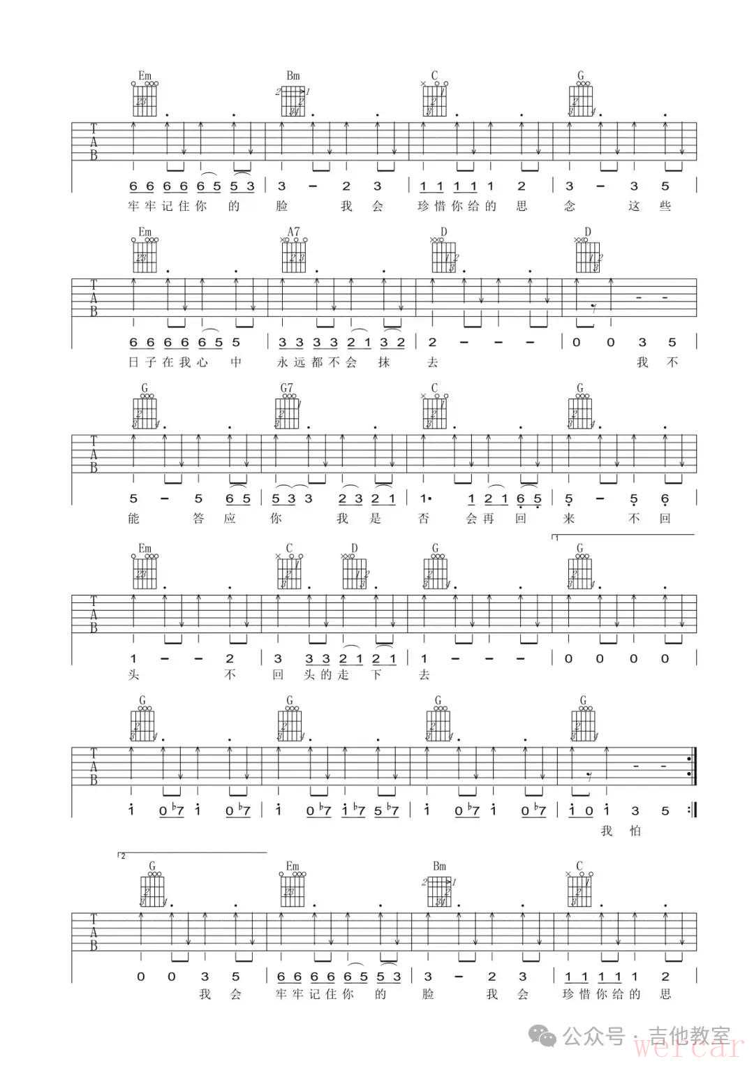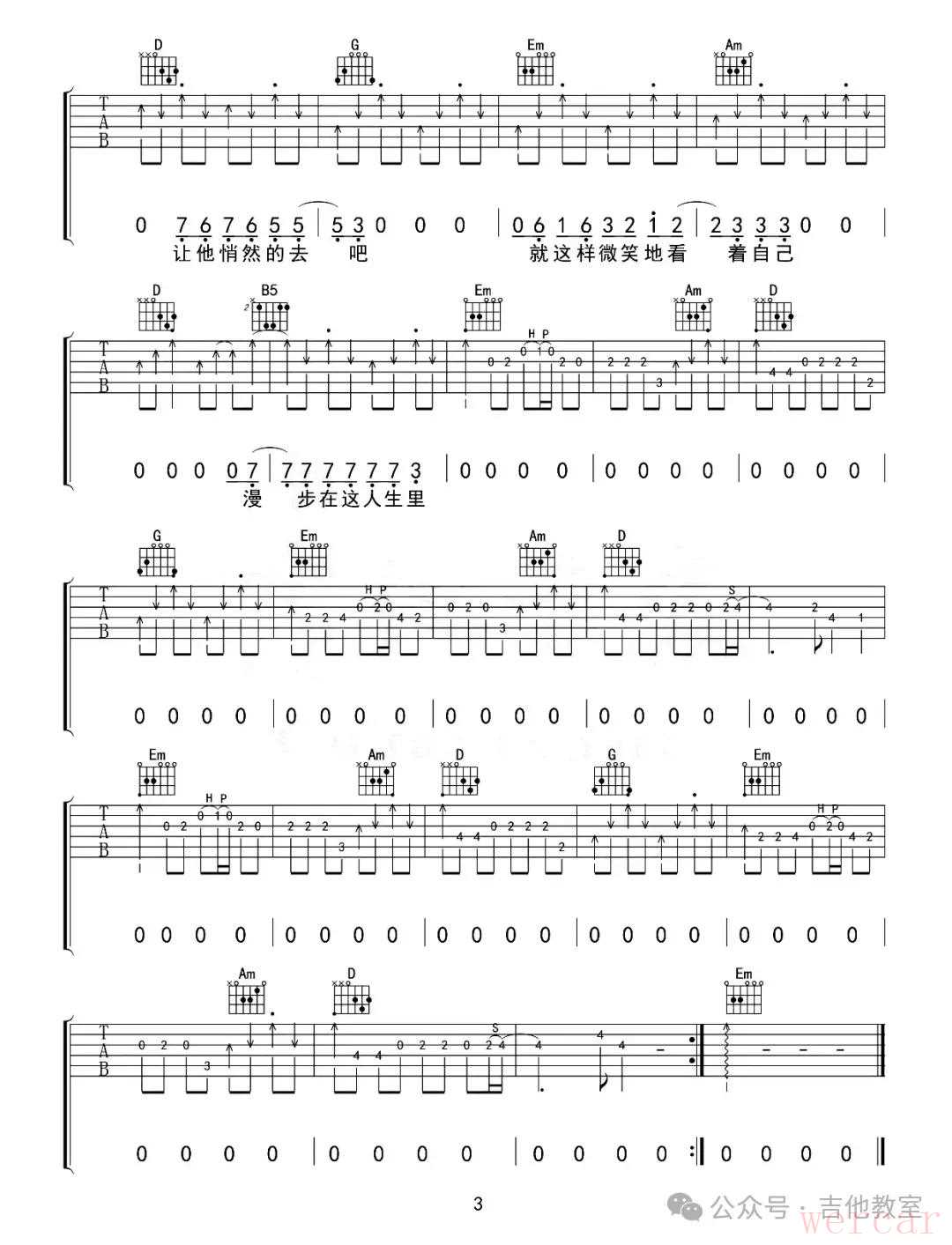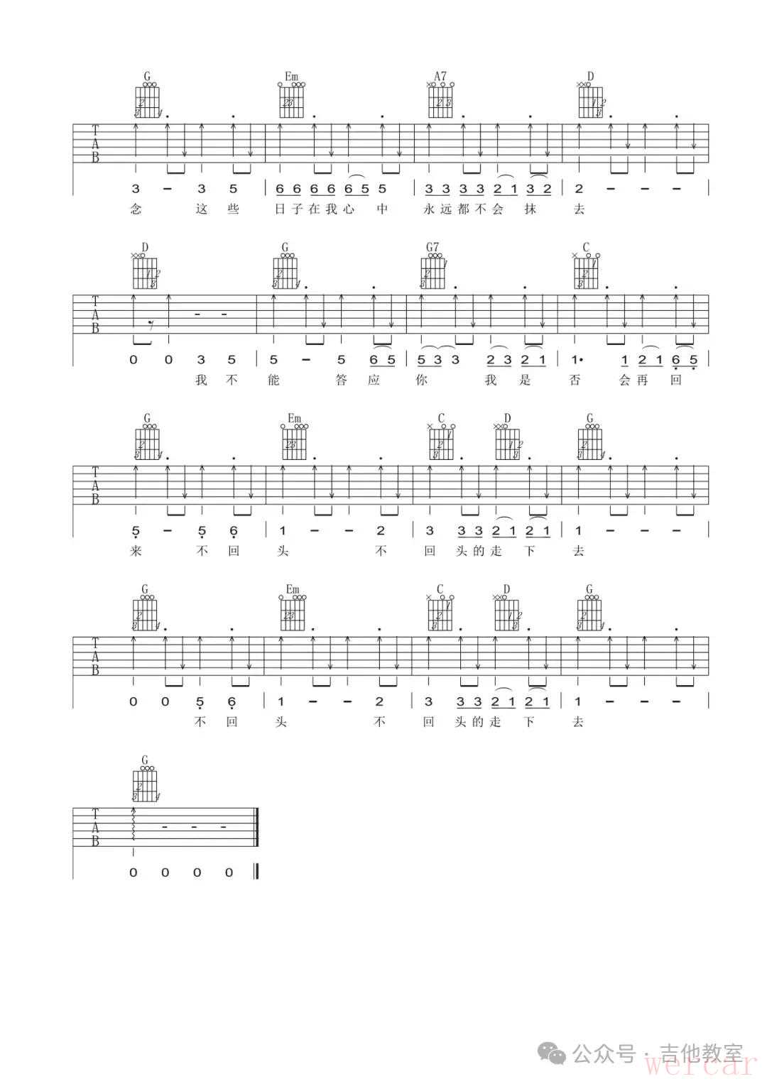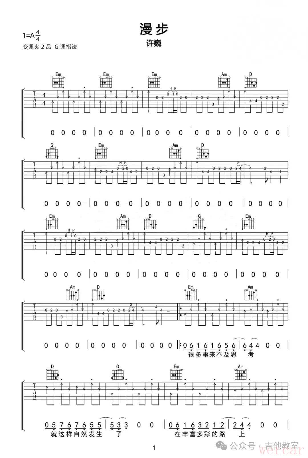 许巍《漫步》吉他谱