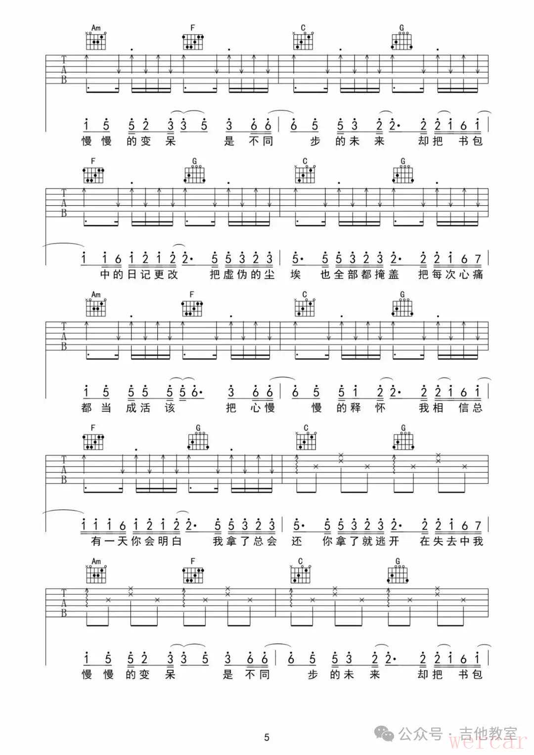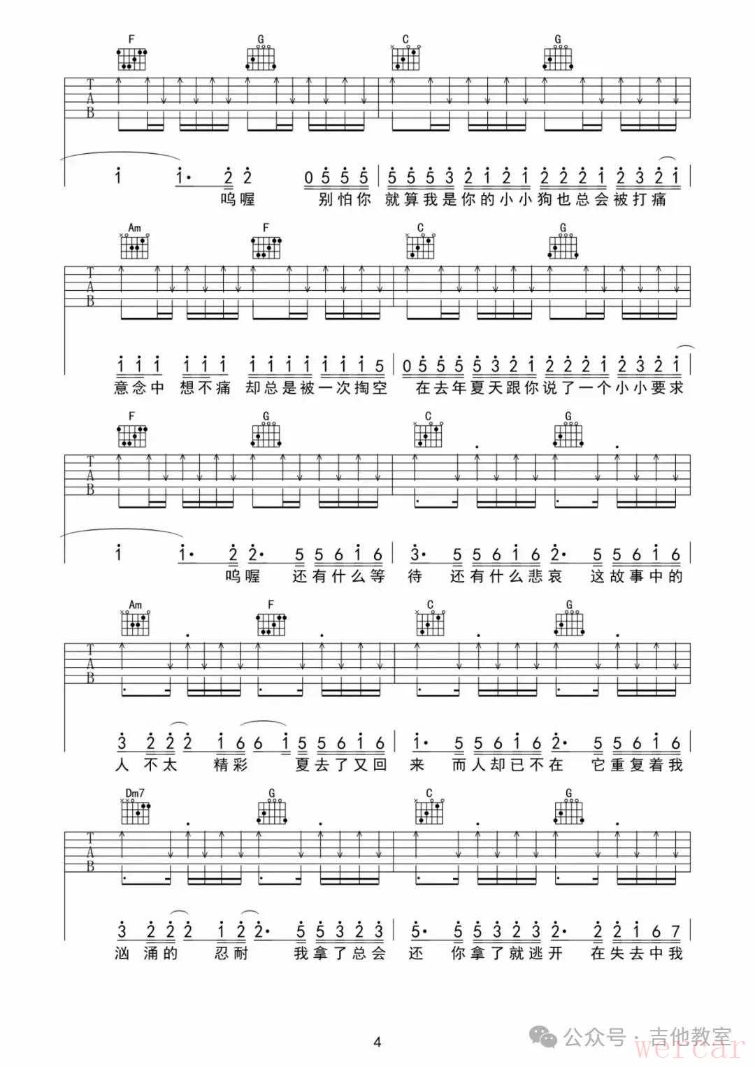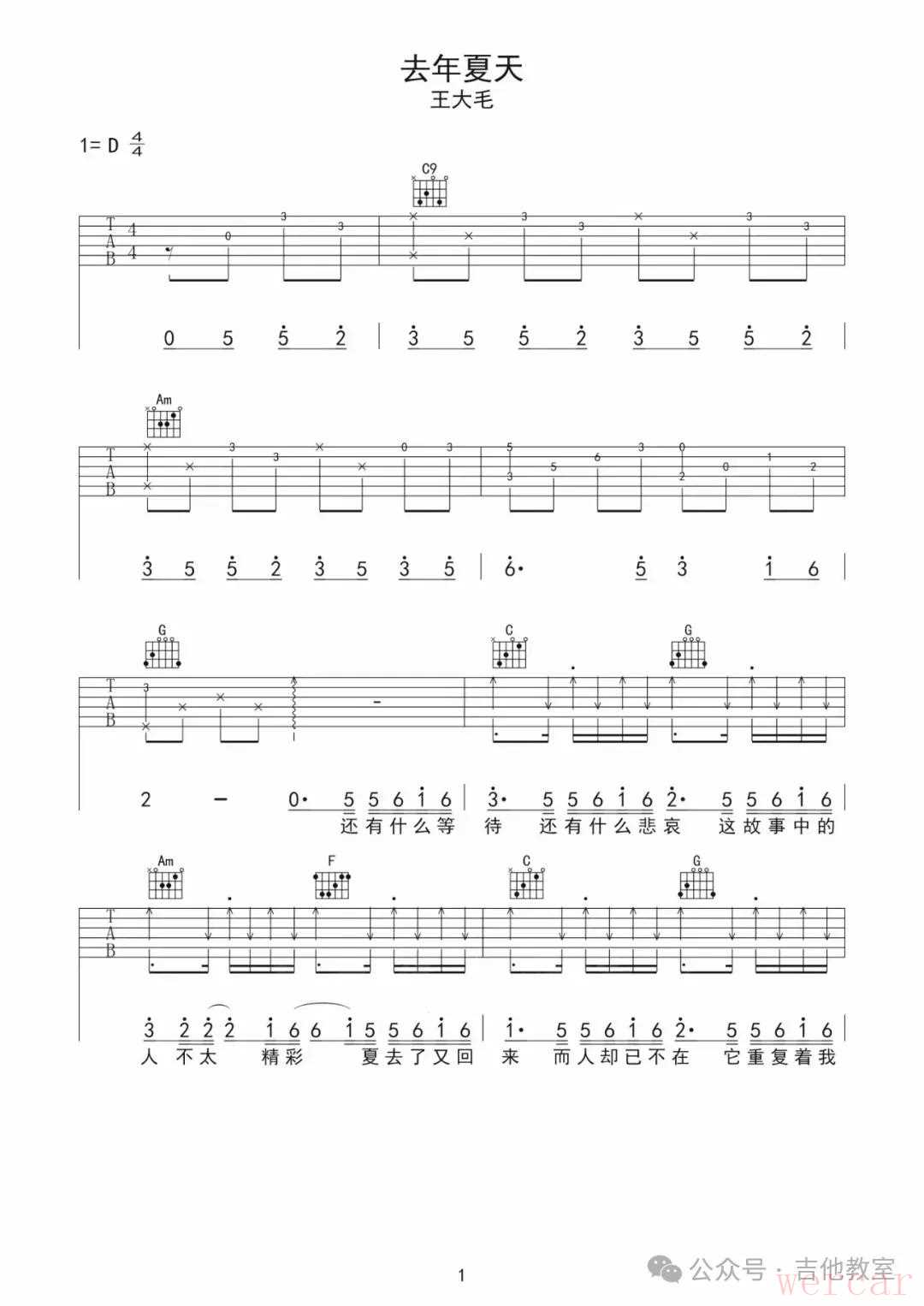 王大毛《去年夏天》吉他谱