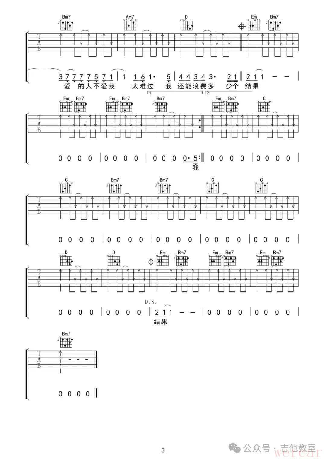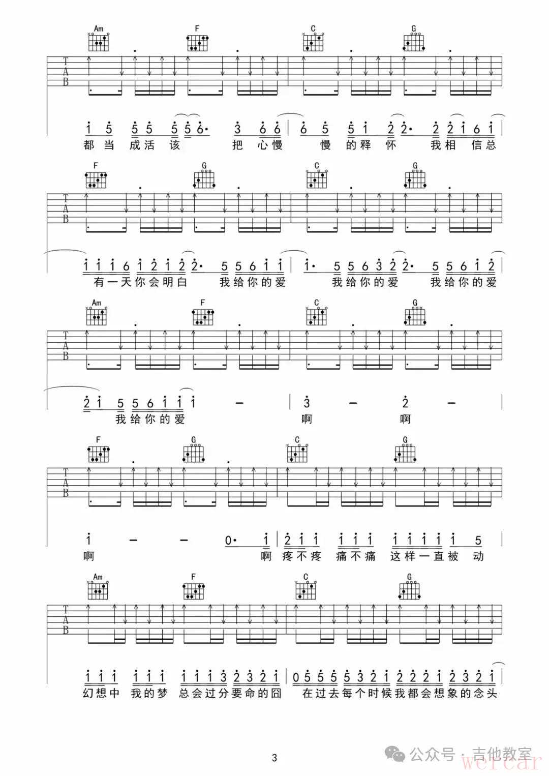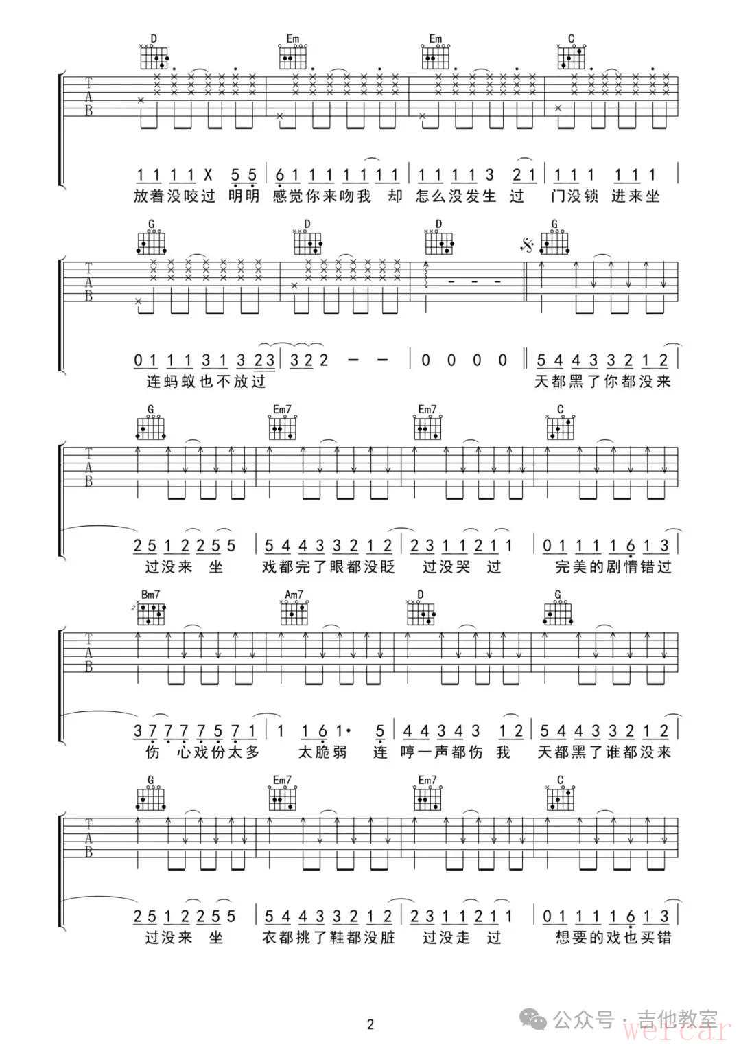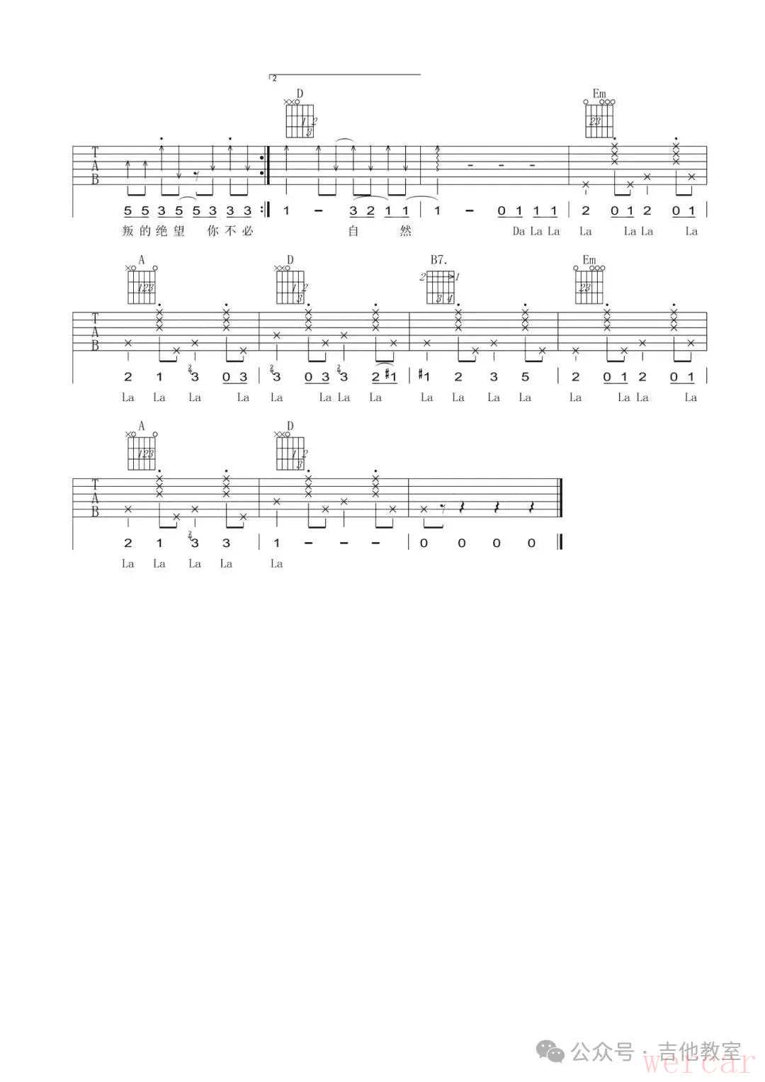王大毛《去年夏天》吉他谱