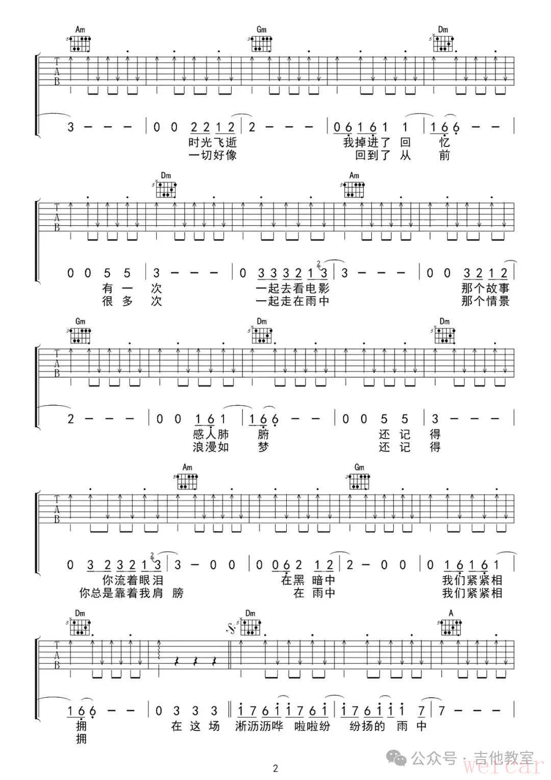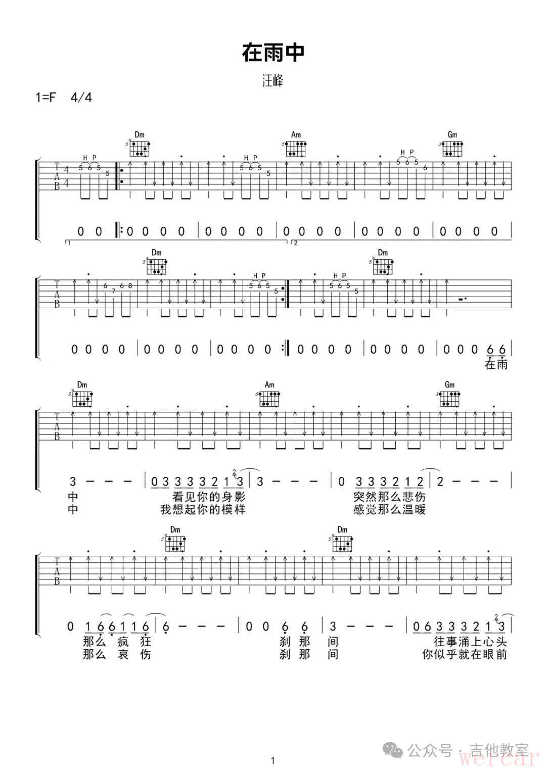 汪峰《在雨中》吉他谱