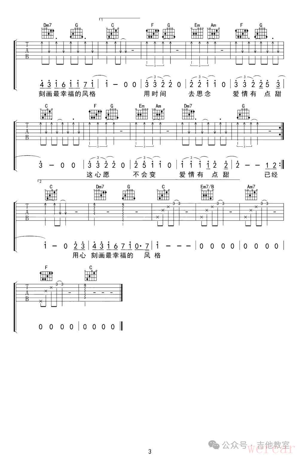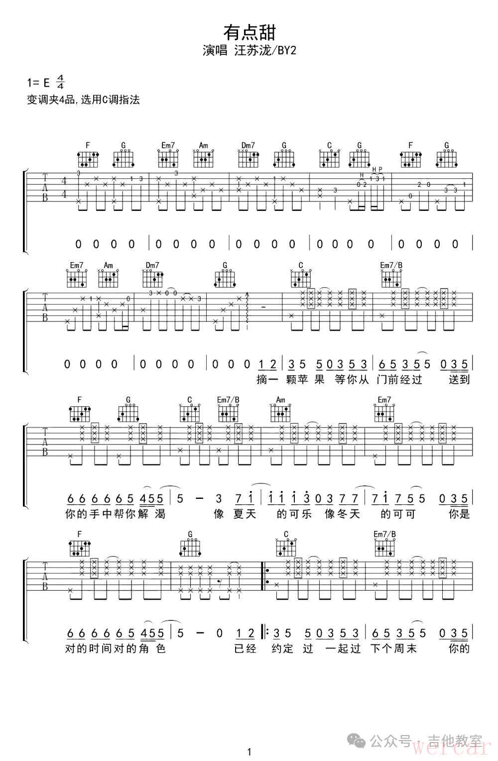 汪苏泷《有点甜》吉他谱