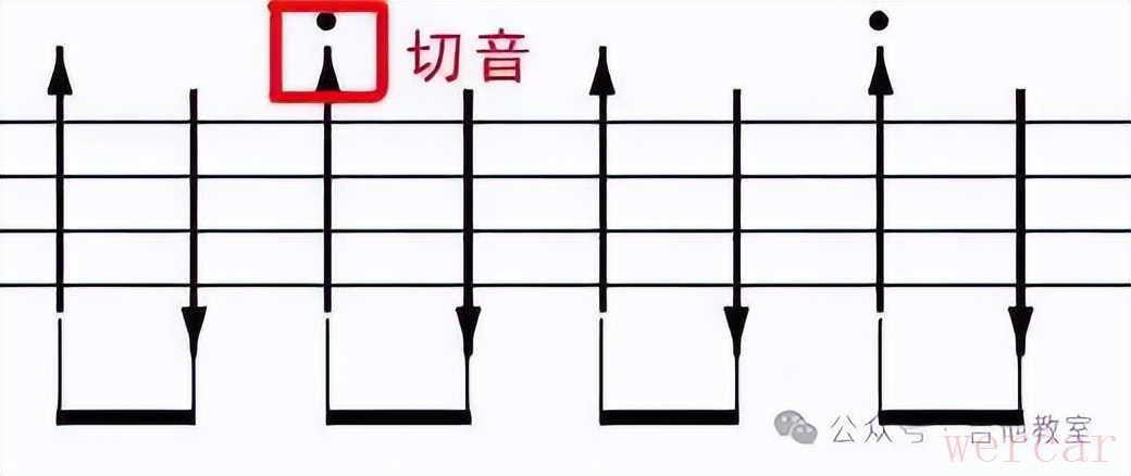 大鱼际切音:大鱼际是手掌靠近拇指的部分。在扫弦时,食指和拇指轻微捏成“十字”,向下扫弦的同时,大鱼际迅速往下压,阻止琴弦的正常发声。这种方法常用于低音弦的切音,能够产生浑厚而有力的闷音效果。
