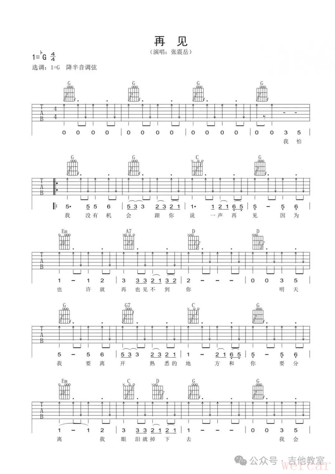 张震岳《再见》吉他谱