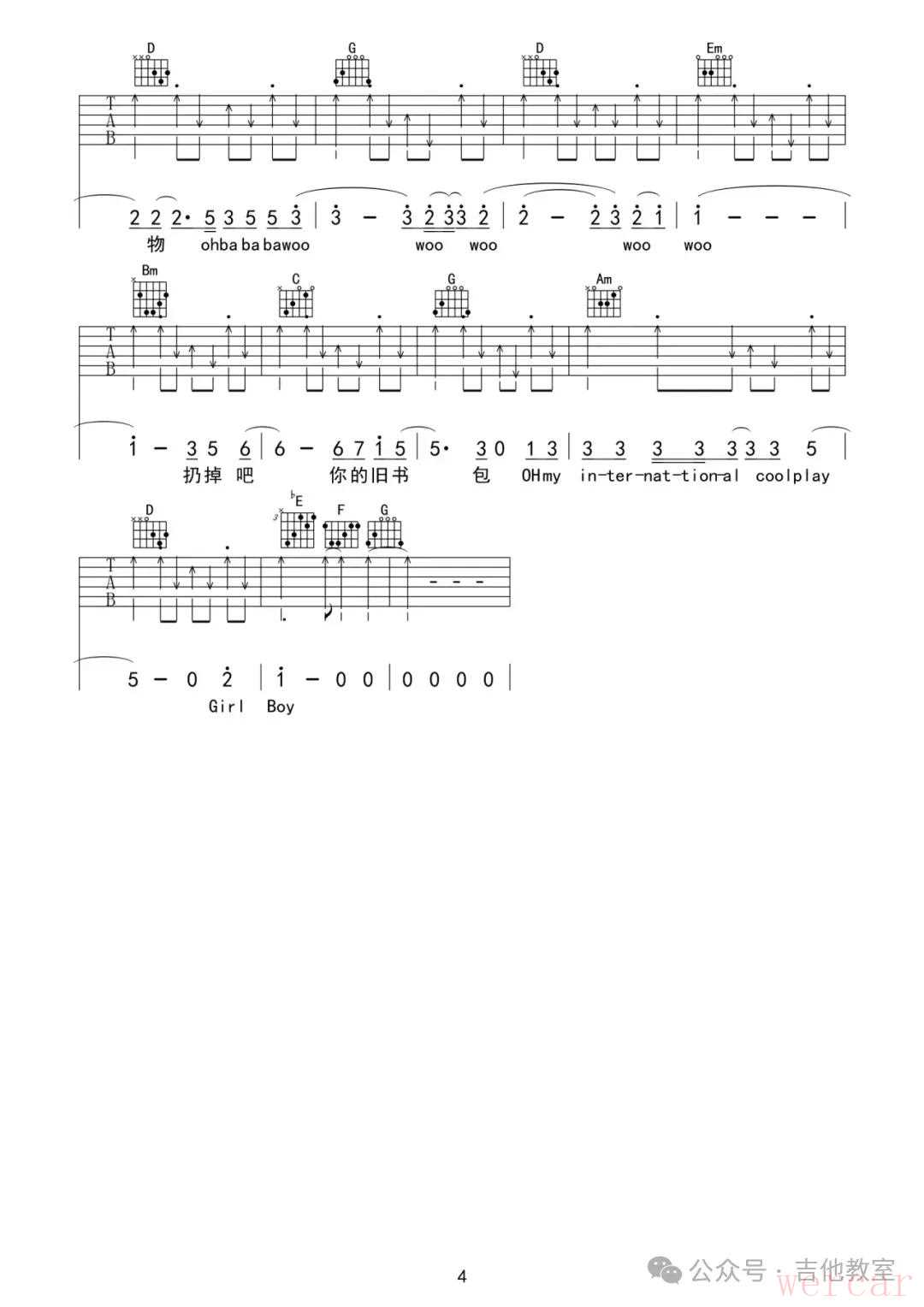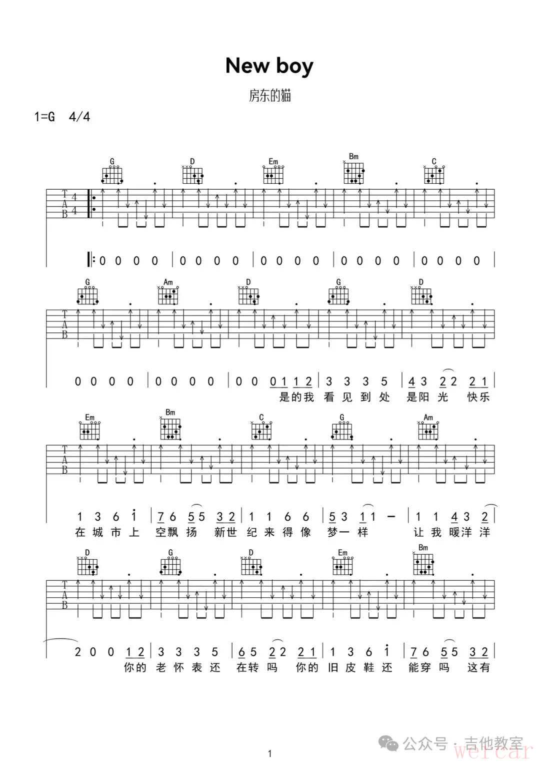 朴树《New Boy》吉他谱