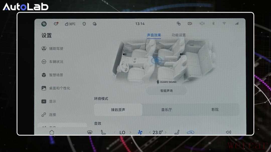 在智能声场方面,鸿蒙座舱系统,可以根据车内座位、人员分布等智能调整声场覆盖。