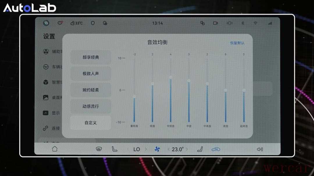单人时会根据乘坐位置自动调整声场,多人时则会匹配全车模式。在这样的智能调节辅助下,可以减少每次由于忘记手动调整而导致的不好的听感体验。
