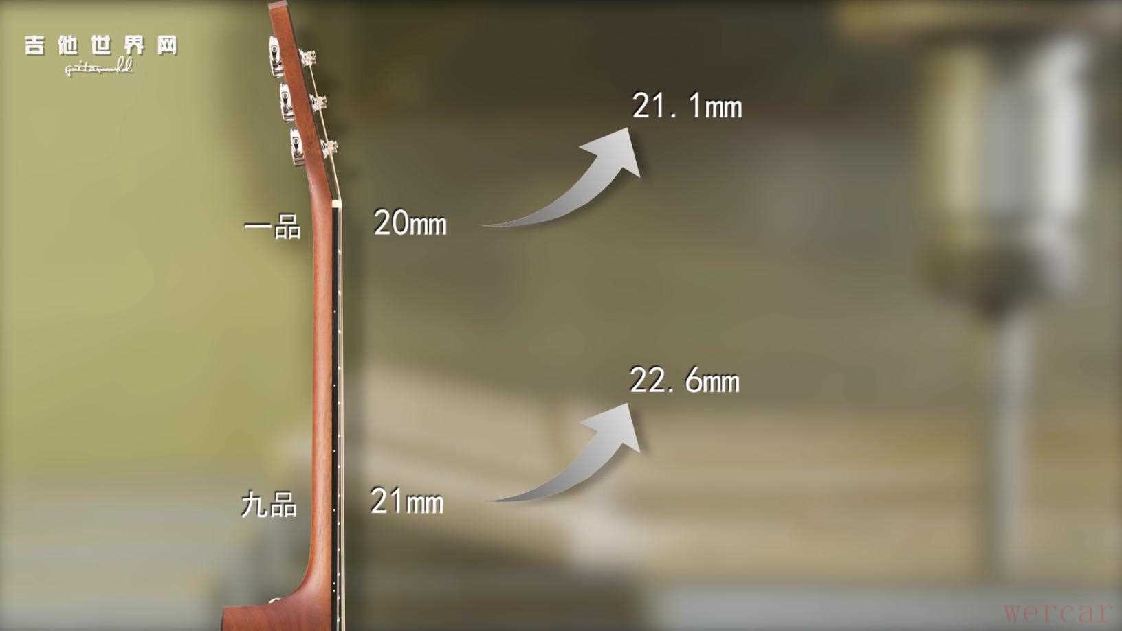 但首先琴颈的薄也是有极限的,过薄的琴颈太容易变形,碳钢条也拯救不了;其次卡马收到不少来自琴友的反馈,表示太薄的琴颈弹起来没有什么存在感。出于这两方面的考虑,卡马将琴颈加厚到一品21.1mm、九品22.6mm。