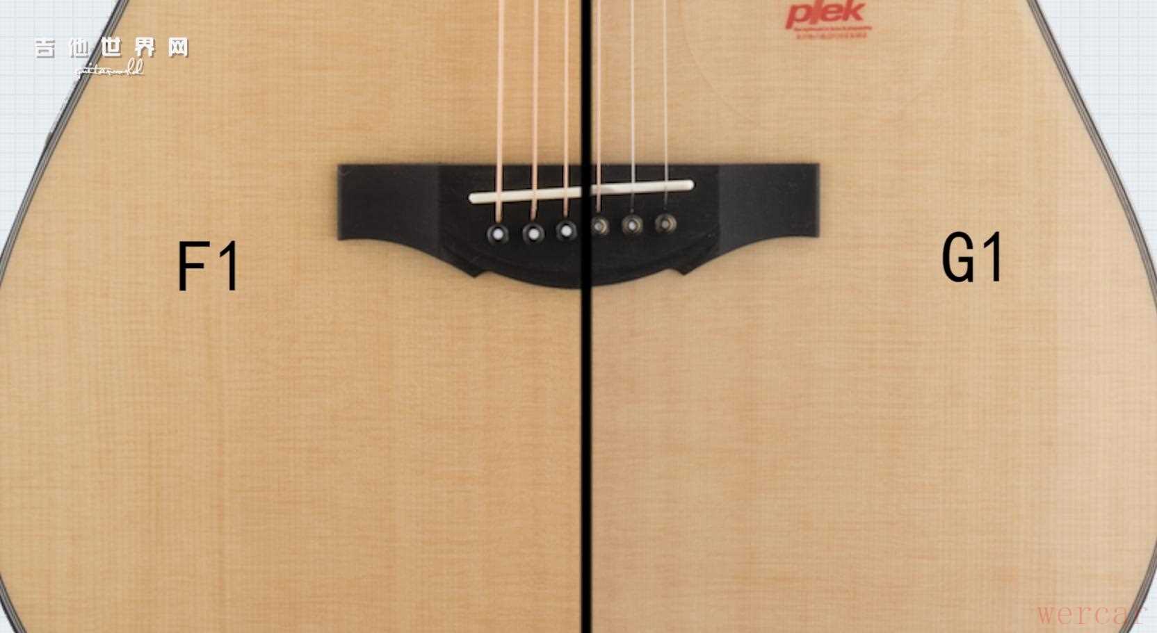 虽然F1价位上比G1低了一个级别,但这并不意味着F1的工艺也比G1低一个级别。从我们测评的这两支吉他的面板的质量就可以看到,F1的正切度完全不逊于G1。