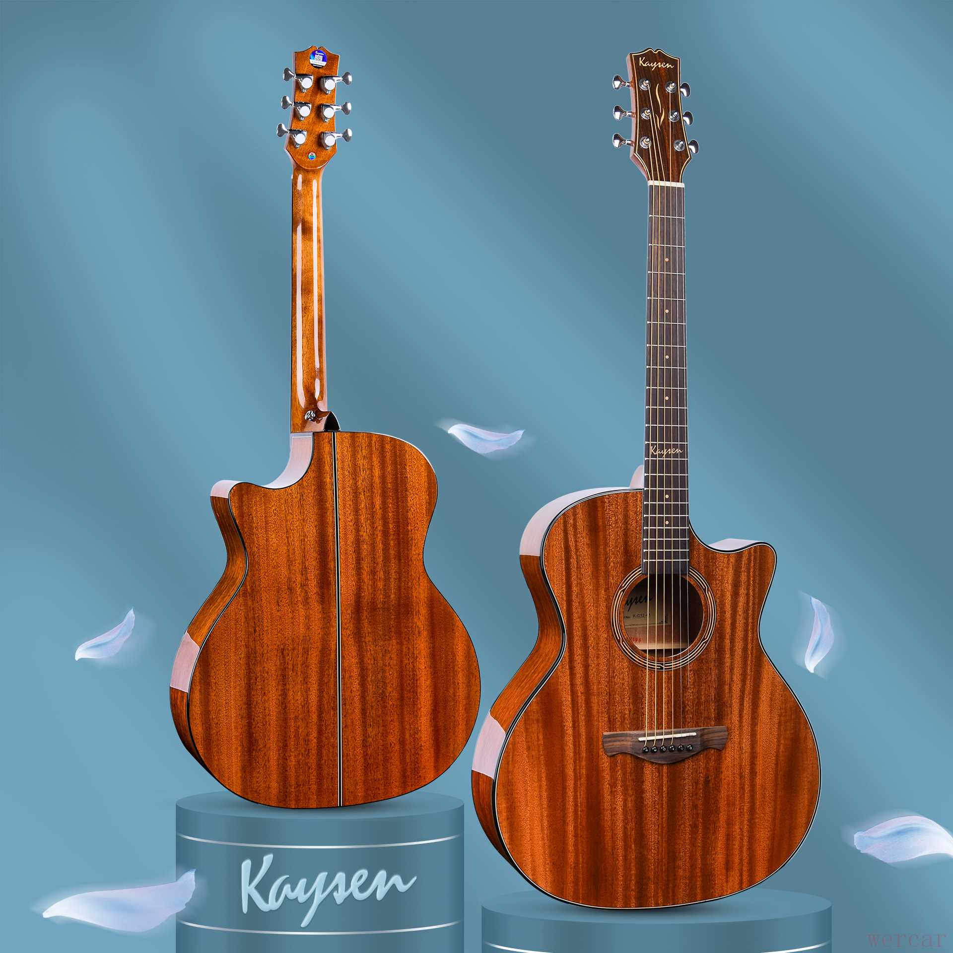 2、音质区别、圆角吉他共鸣箱完整,声音饱满圆润、更加浑厚稳定、穿透力强,发音共振时,音质传导顺畅、音质会更好。