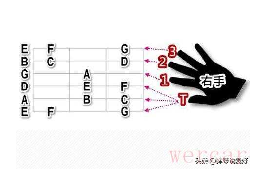 举个例子:从空弦到12品一根弦一根的练习弹奏,并记住每个品位上的音名,如一弦上,从空弦E往下为FF#GG#AA#BCC#DD#E,这样记的目的就是为了以后水平提升打基础,不管是弹六线谱还是五线谱都难不倒你。
