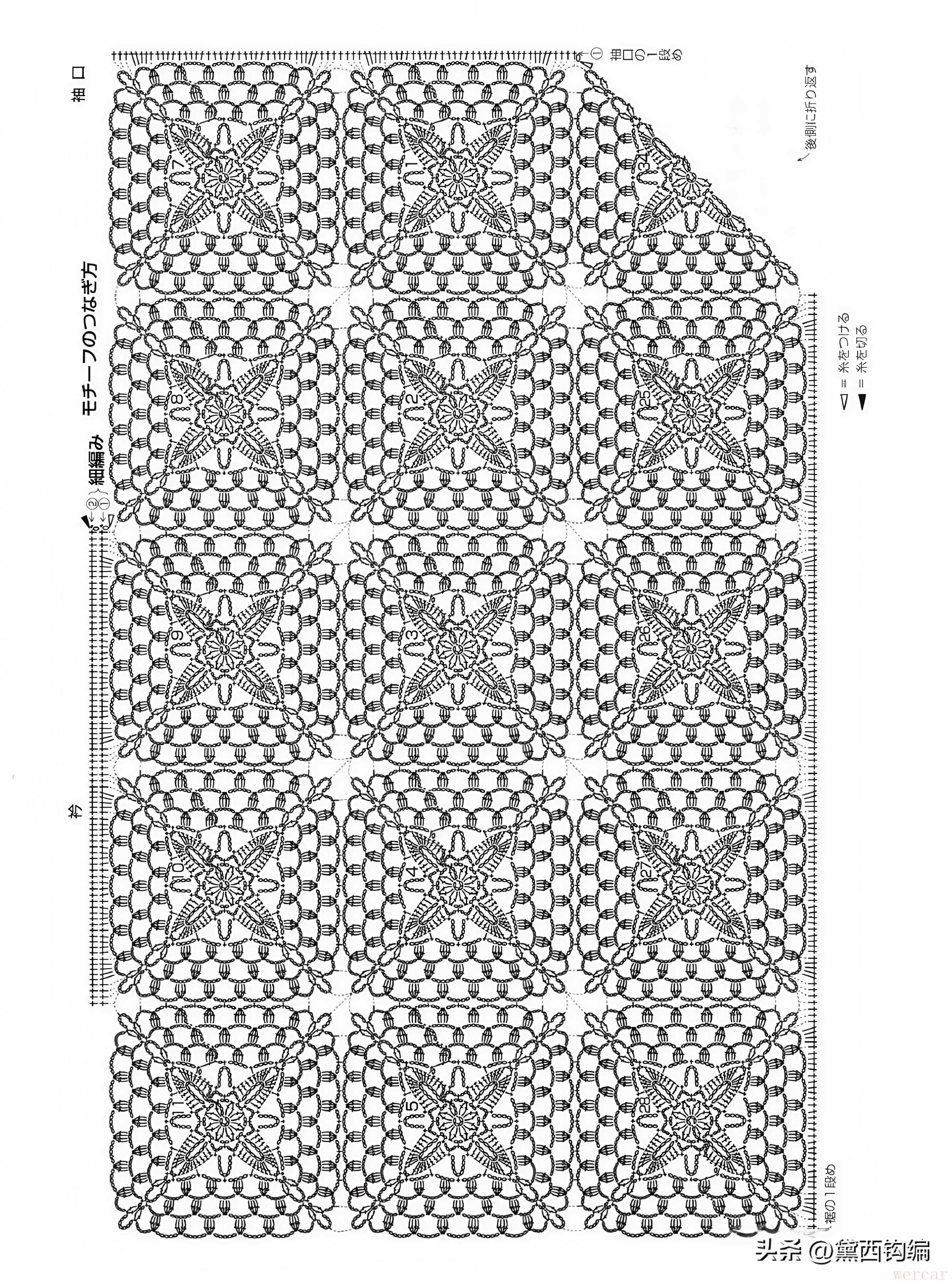 "模块化拼花:" 将整个衣身分成几个小区域(模块),每个区域单独钩制,最后缝合起来。这样不会一次性面对整个复杂的图案,压力小。