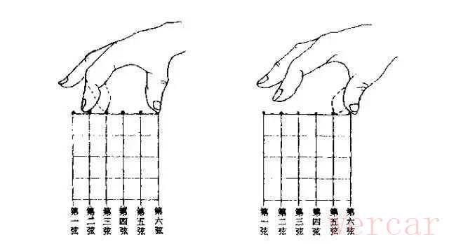 右手主要分为靠弦奏法和钩弦奏法两种。