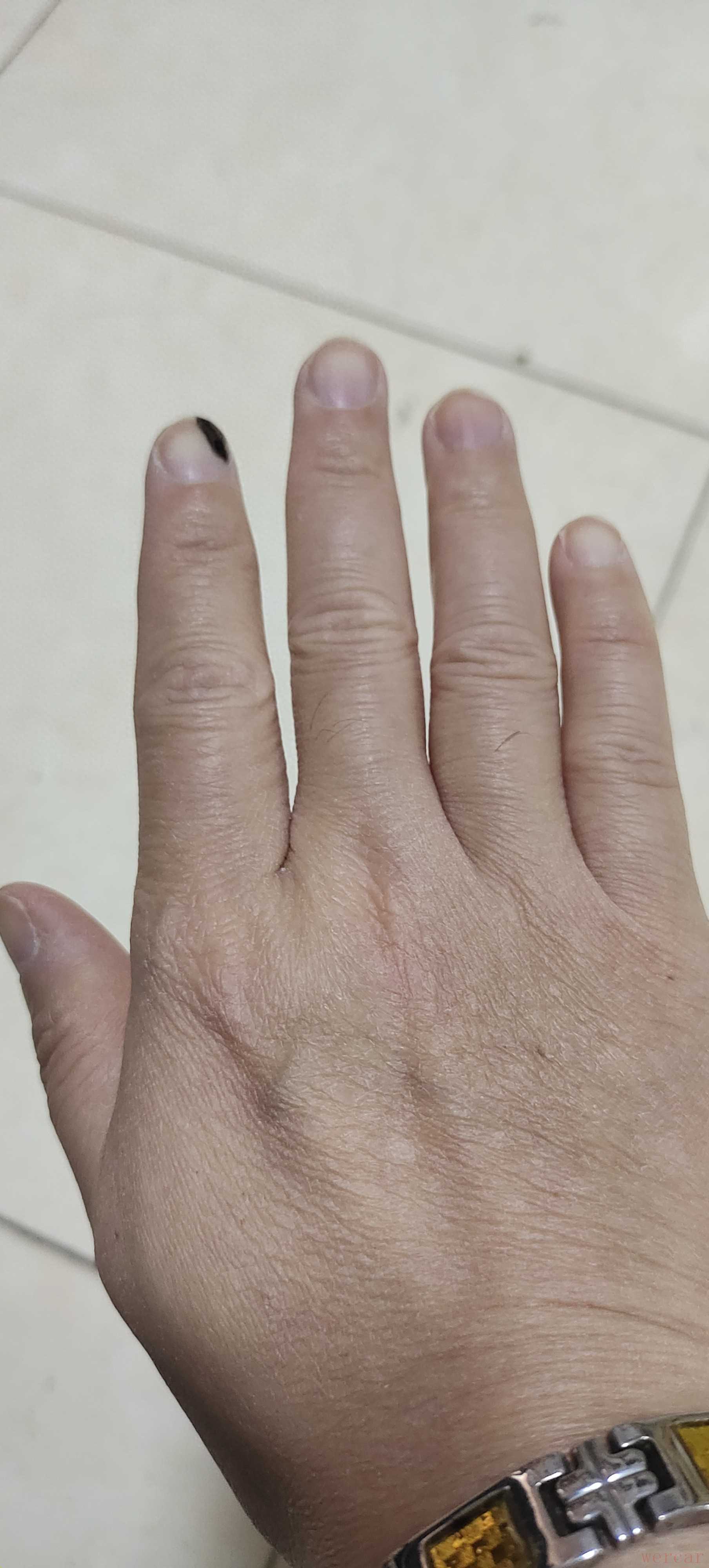 将右手的大拇指和食指捏成“十字交叉状”,食指的指尖略微向里收。