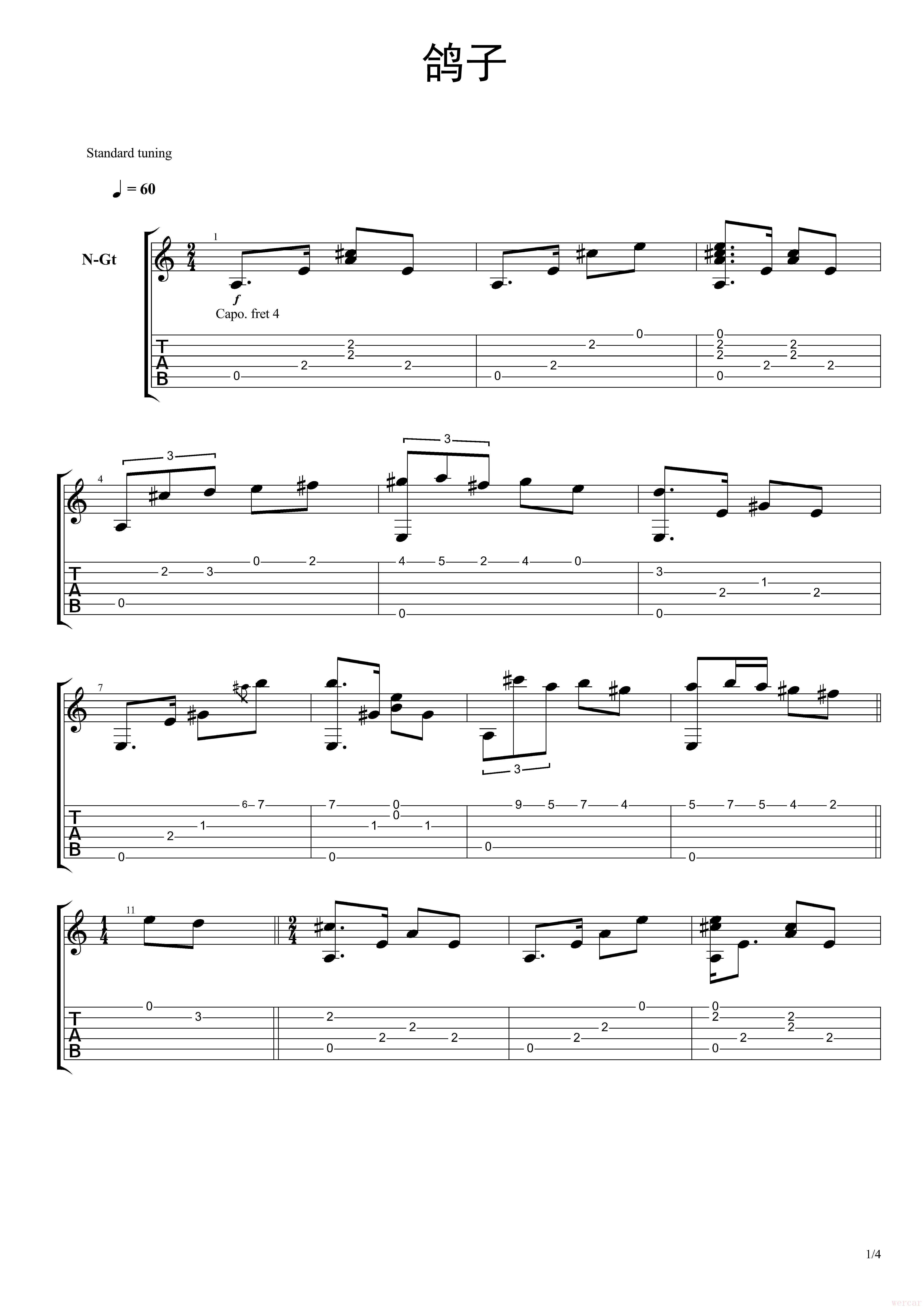 尼古拉·德·安捷罗斯经典之作鸽子吉他谱详解