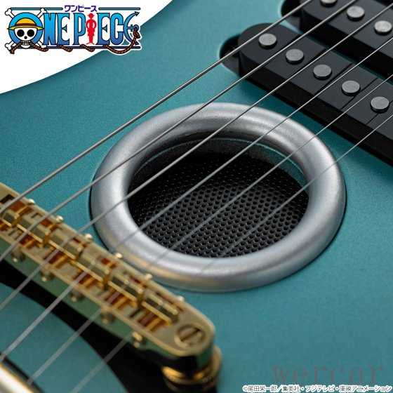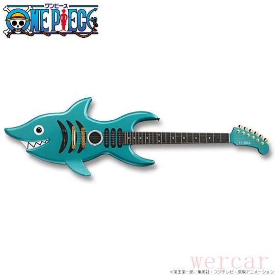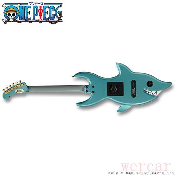 本商品是动画op和岛村乐器股份有限公司合作生产的吉他。造型外观与动画中登场的草帽团成员布鲁克手持的「shark guitar」完美再现。