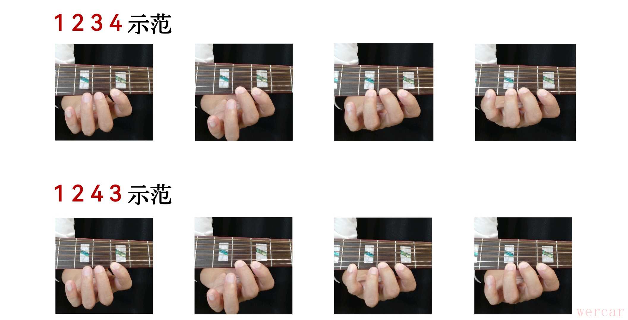 2,为了左手的手指更灵活,可将1234,四个手指反复交替,每一根弦反复弹奏。