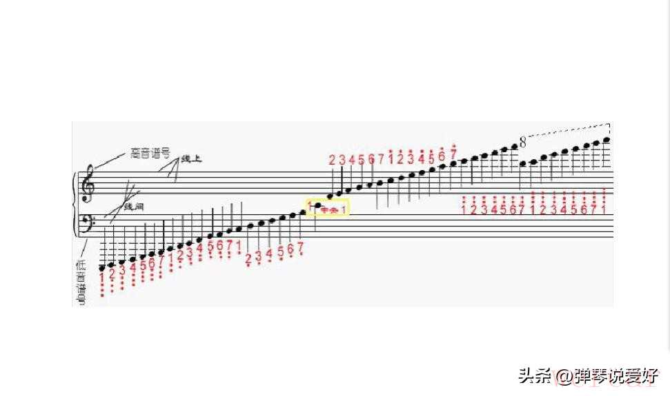 然后思考再三,决定花一月时间来研究这个蝌蚪文。首先知道记谱原理,原来五条线用来记音高的,就像是楼层一样,每一层作为一个固定的层名。然后往上往下都可以加线来记录。
