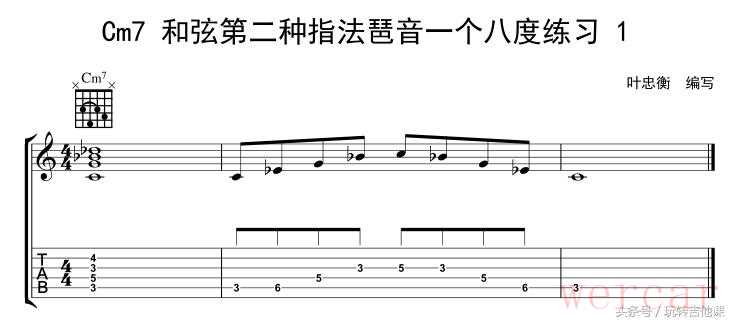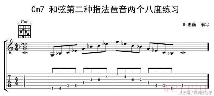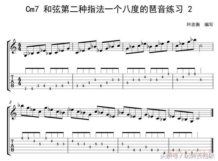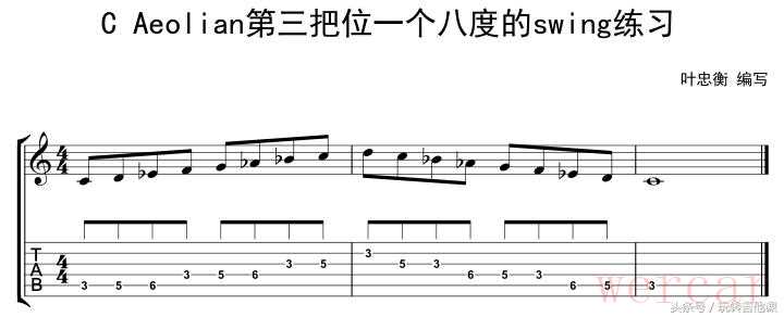 第一个套路 —— 用swing和三连音做一个八度的恋习,从根音走到9音再下行!如谱: