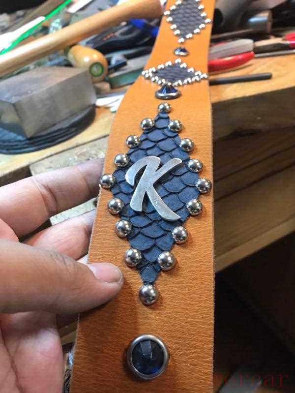 而最近,老师傅又更博了,大概是知道王俊凯在舞台上因为吉他背带出糗了,所以重新做了一条。而这次的就比上次的更加精致了,背带颜色换成了橙色,是TFBOYS组合的应援色,上面依然是铆钉拼成了菱形,菱形中间是一个大大的K,十分帅气。