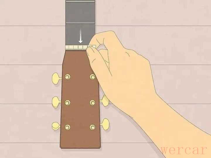 · 如果你要重新安装旧弦,请确保首先清洁它们。 完成吉他的重新装弦后,检查琴弦的高度,通过按下最上面一根弦的第三品。