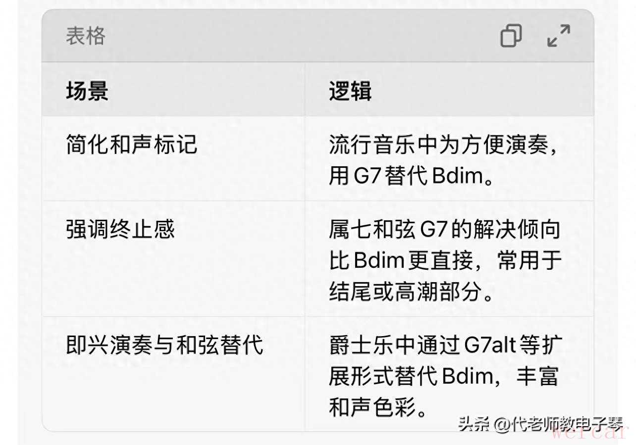 流行歌曲中,为简化和声复杂度,演奏常直接使用G7替代Bdim,以更直观地体现“解决到主和弦”的功能。