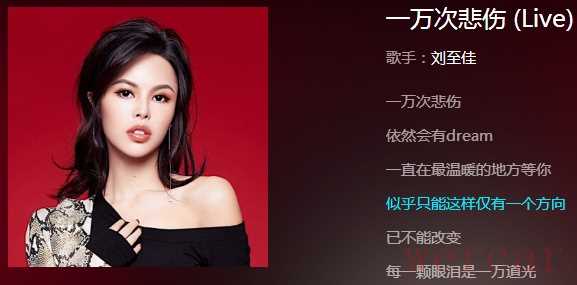 据了解,刘至佳翻唱的《一万次悲伤》这首歌目前可以在酷狗音乐上听,只不过并没有完整版,只有高潮部分的版本。《一万次悲伤》这首歌的原唱是逃跑计划,该曲收录在逃跑计划2011年发行的专辑《世界》中。近日通过刘至佳的翻唱,引起了不少网友的热议以及关注。
