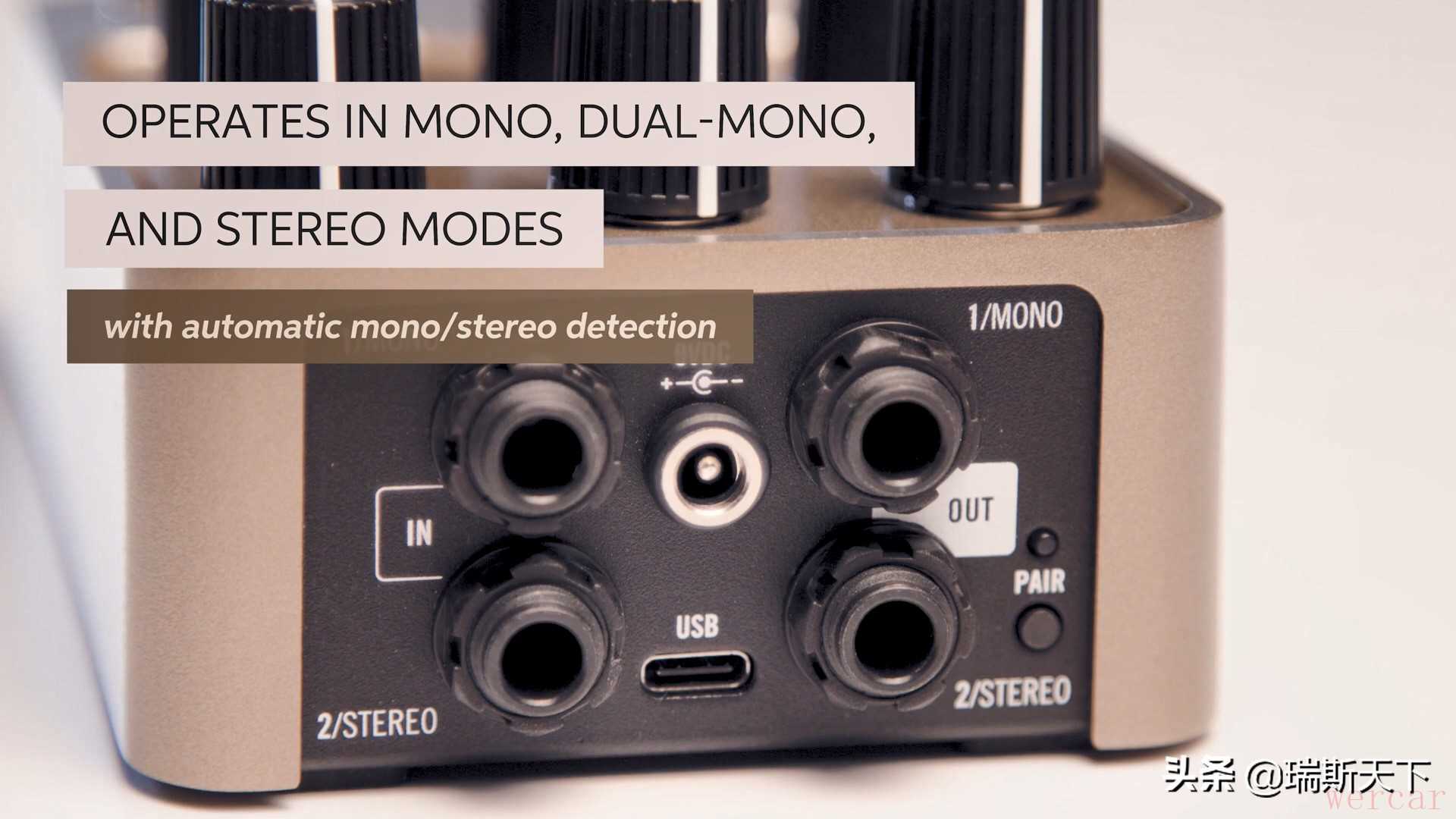 这个系列的效果器,有个比较大的优势就是,内置了双引擎,通过下方的两个脚踏钉来切换,效果的开关和选择预置都很方便,目前的自带预设比较少,但不要紧,后续官方会制作更多的效果,大家感兴趣的话可以去下载来用,接口方面 Golden Reverberator混响效果器,配备了双单声道的输出输入,以及立体声的输出输入,这样各种应用场景都可以自由使用,这一点挺省心的,毕竟不是所有厂牌都用一样的进出方式,多一些准备挺好的。