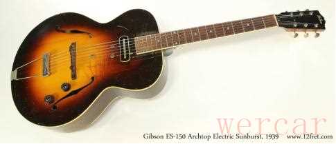 著名的Gibson ES150,爵士空心琴的鼻祖。它于1935年上市,传奇的爵士吉他大师Charlie Christian成为第一个在演出中使用电吉他和放大器的人。 不过严格说来,Es150并不能算真正意义上的电吉他,因为它的主要发声部位仍然是共鸣箱。而我们今天熟悉的电吉他,都是由拾音器拾取琴弦的振动信号,然后通过扩声器扩大信号再发出声音。