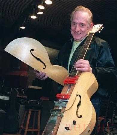 琴如其名,它长得就像一把带有超长柄的平底煎锅,整体是用铸铝做成的。另外它的也算不上严格意义上的电吉他,因为它仍旧不能像传统吉他那样演奏。 1940年,爱迪生发明了实心电声小提琴。这个消息让当时身为吉他手的Les Paul深感振奋。1941年的一个周末,在Epiphone公司的工作间中,Les Paul将一把Epiphone的f孔空心吉他切成两半,再将一块实心木块夹在中间,然后将两个拾音器固定在这块实心的木板上——历史上第一把真正的电吉他诞生了。