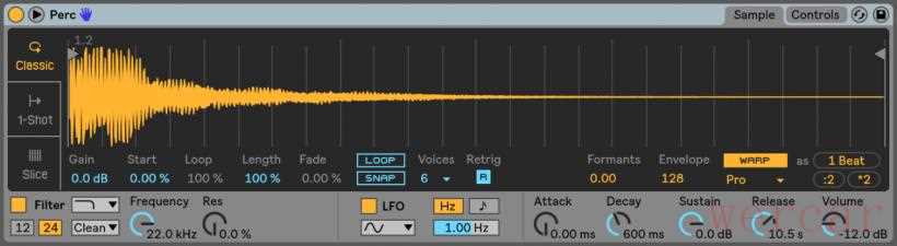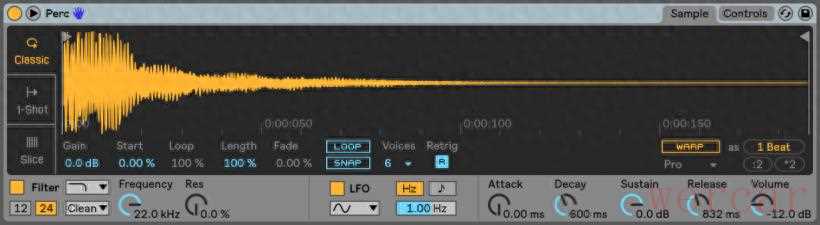 接下来我们将用Ableton的Simpler与一个打击乐器的瞬态鼓声来演示该过程: