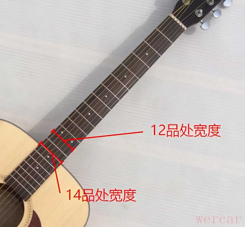 指板宽度一般会考虑两个位置的参数,一是上弦枕处的宽度,也就是所谓的“0品宽度”;二是12品或14品处的宽度(大部分琴是在14品处琴颈接入琴体,也有12品连接的琴)。