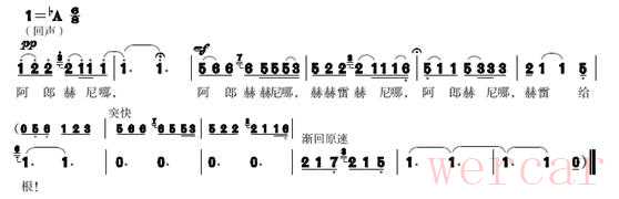 尾奏:又叫“尾声”, 是乐曲组成部分。在乐曲(歌曲)或乐章的最后一个部分,用以引申未尽之意,补充、加强结束的部分叫尾声。尾声有更进一步抒发作品的感情,让整首音乐作品的主题、内容表达更加充分、完美的作用。如《乌苏里船歌》: