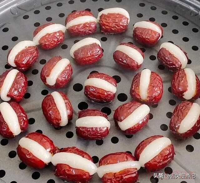 - 红枣泡软去核更省力,别切断才能“夹”住糯米;