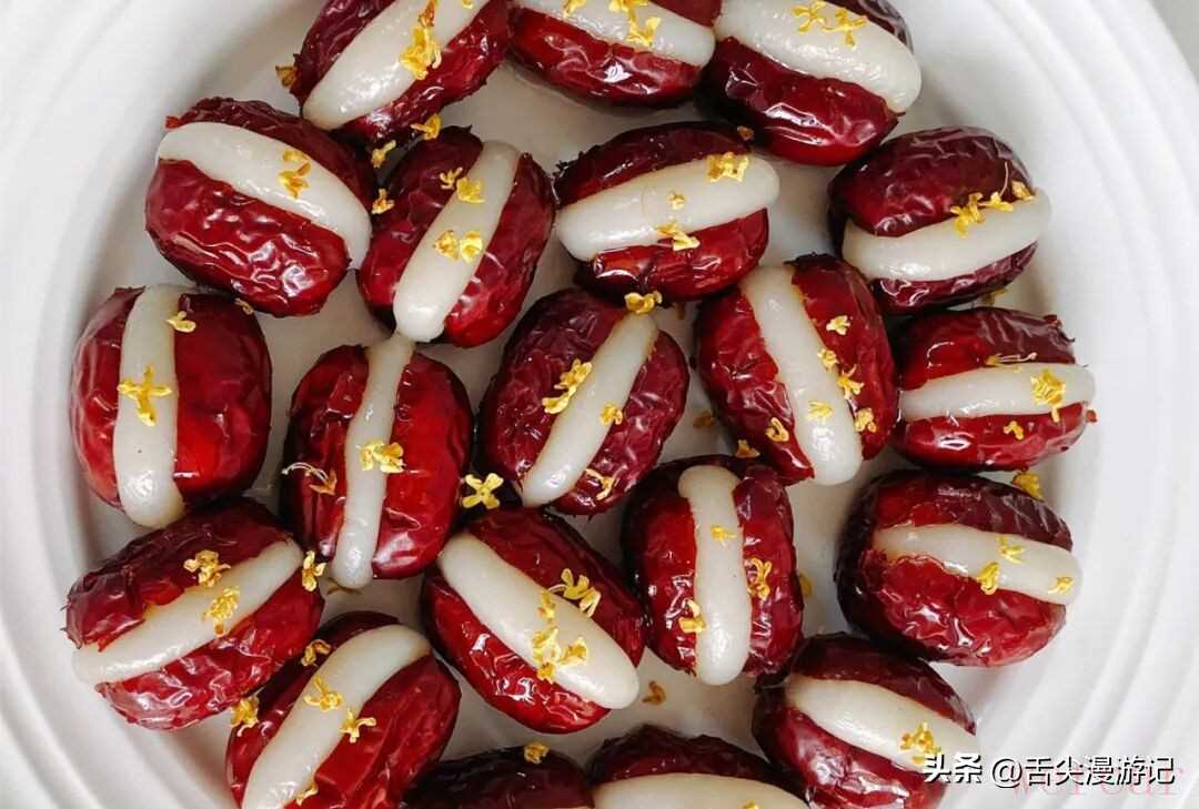 一到冬天就馋这口甜糯!这款红枣夹糯米的小点心,外号“开口笑”“心太软”,枣香裹着糯米Q弹,淋点糖水撒桂花,全家闻到味儿都围过来~