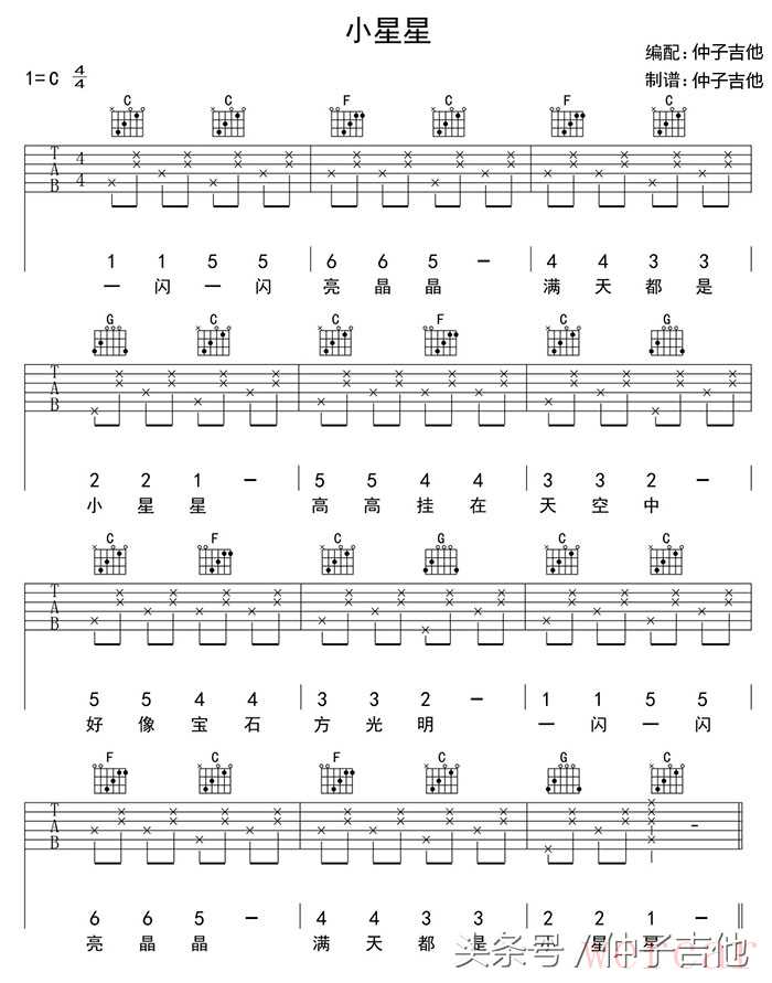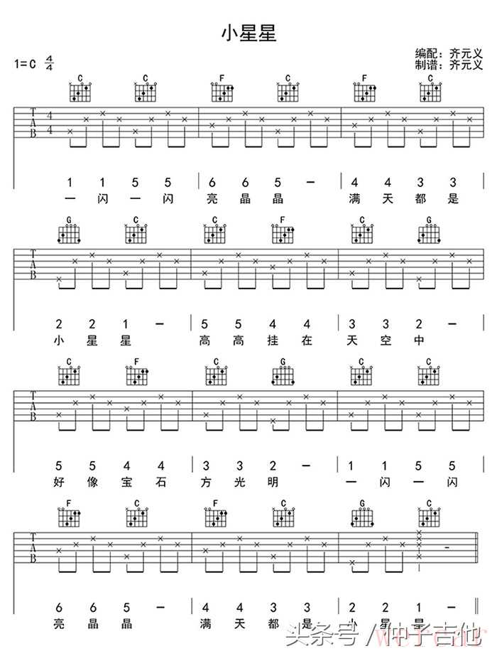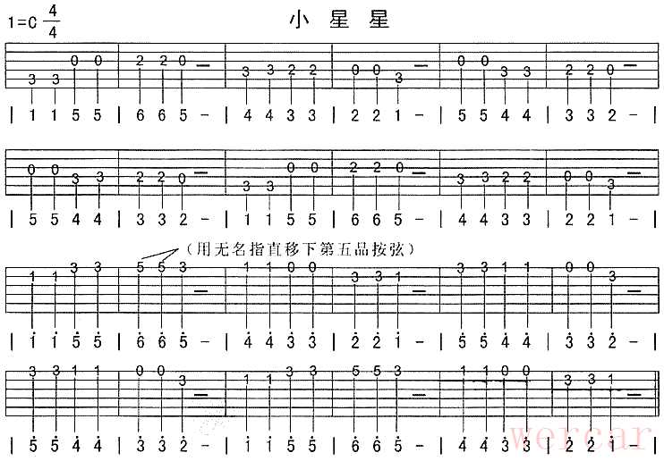 C调吉他音阶速成攻略,一首小星星助你熟练掌握