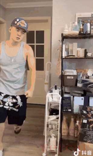 他是掀起衣角,顶胯,人形支架360度无死角拍摄,