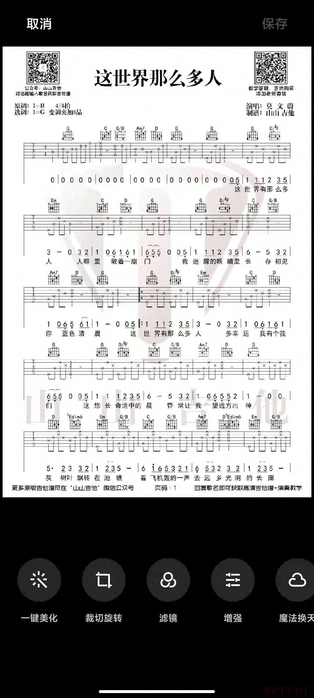 吉他弹唱爱好者,经常需要上网找一些自己喜欢的歌曲的吉他谱,会发现很多不同版本的谱子,良莠不齐,但是绝大部分都有各种水印,下载后直接使用或打印,非常影响观看效果,有些内容还看不清楚,影响练习效率。其实去除水印的方法很简单。