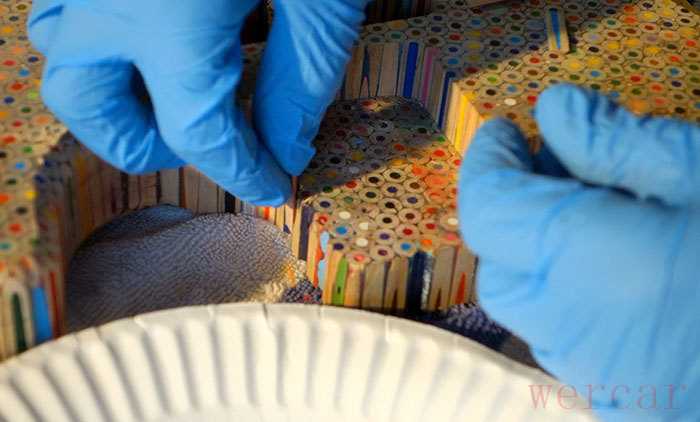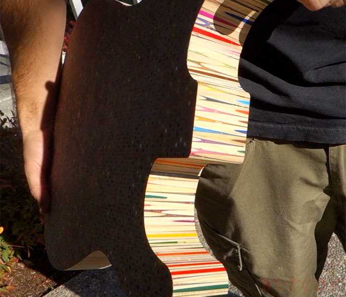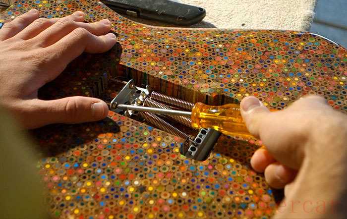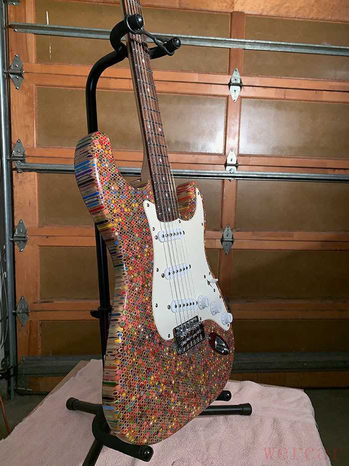 “我看到很多人在网上用彩色铅笔做碗,我觉得这真的很酷,但我想做的东西,是可以真正利用和享受的,”伯尔斯说,“因为我会弹吉他,所以决定做一把芬德风格的电吉他,我认为这将是一个很酷的项目。”