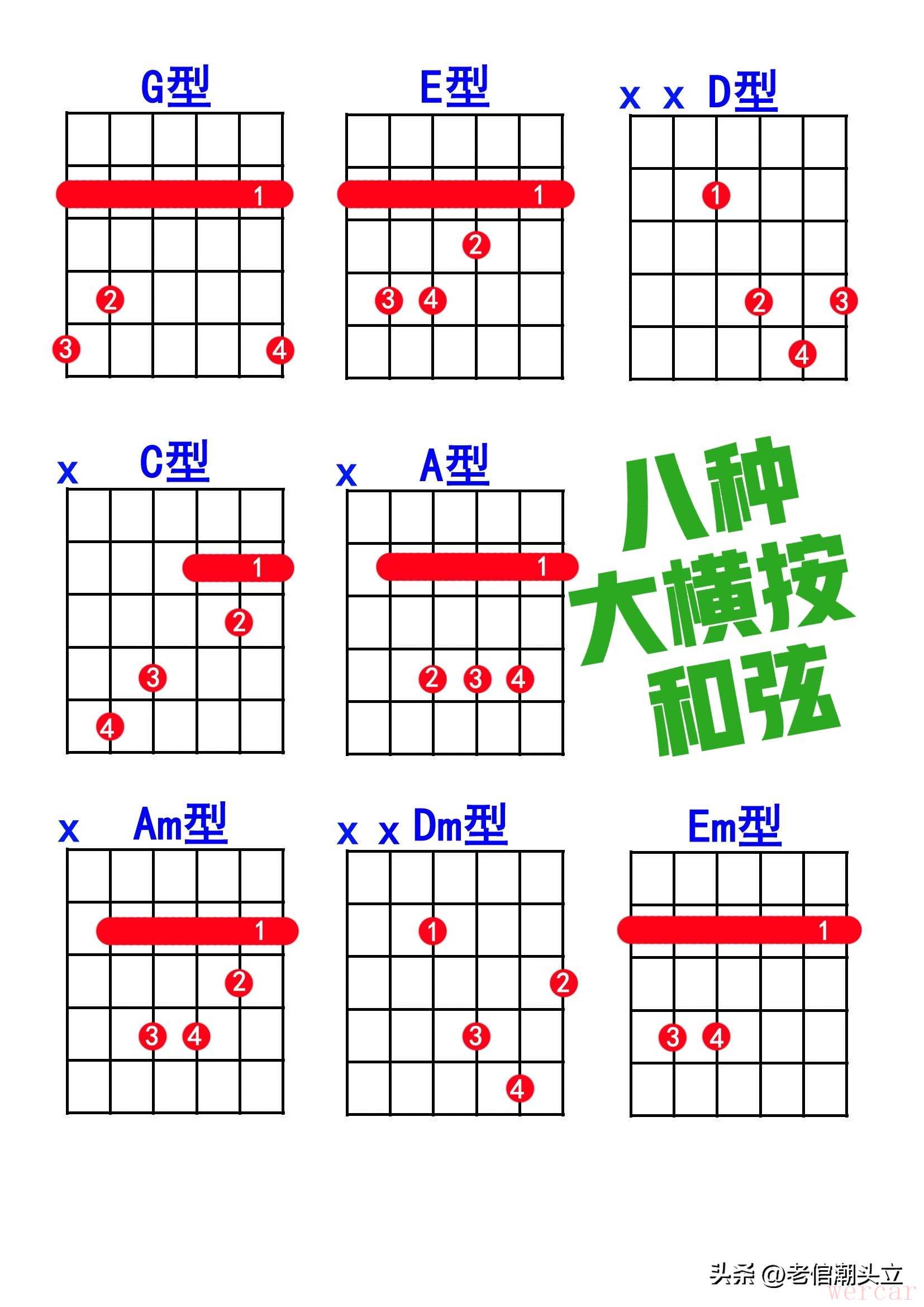这下可算摸出门道了!我赶紧顺着这个“平移思路”往下试:三品大横按的C和弦指型,在二品按就是B和弦,大横按食指放上弦枕上按就是A调!以前那些瞅着谱子干瞪眼的歌,现在换个指型位置,咔咔就能上手弹,那种成就感,别提多爽了!原来,之前学C调、G调的和弦,用平移思路合在一起,就完成了一个调从空弦到十二品,玩转十二个调就是把学好的一个调,再灵活平移。