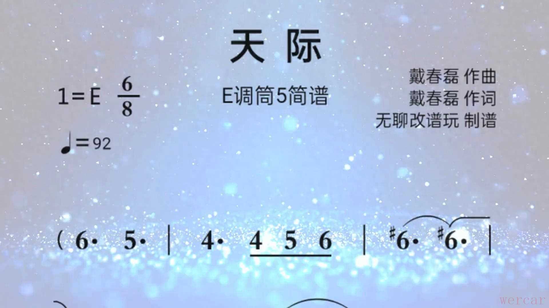 我们来为《天际》这首歌曲创建一个E调的笛子/箫动态简谱,并标注指法(以笛子为例,箫指法会略有不同,但音符位置类似,节奏和气息要求相同)。