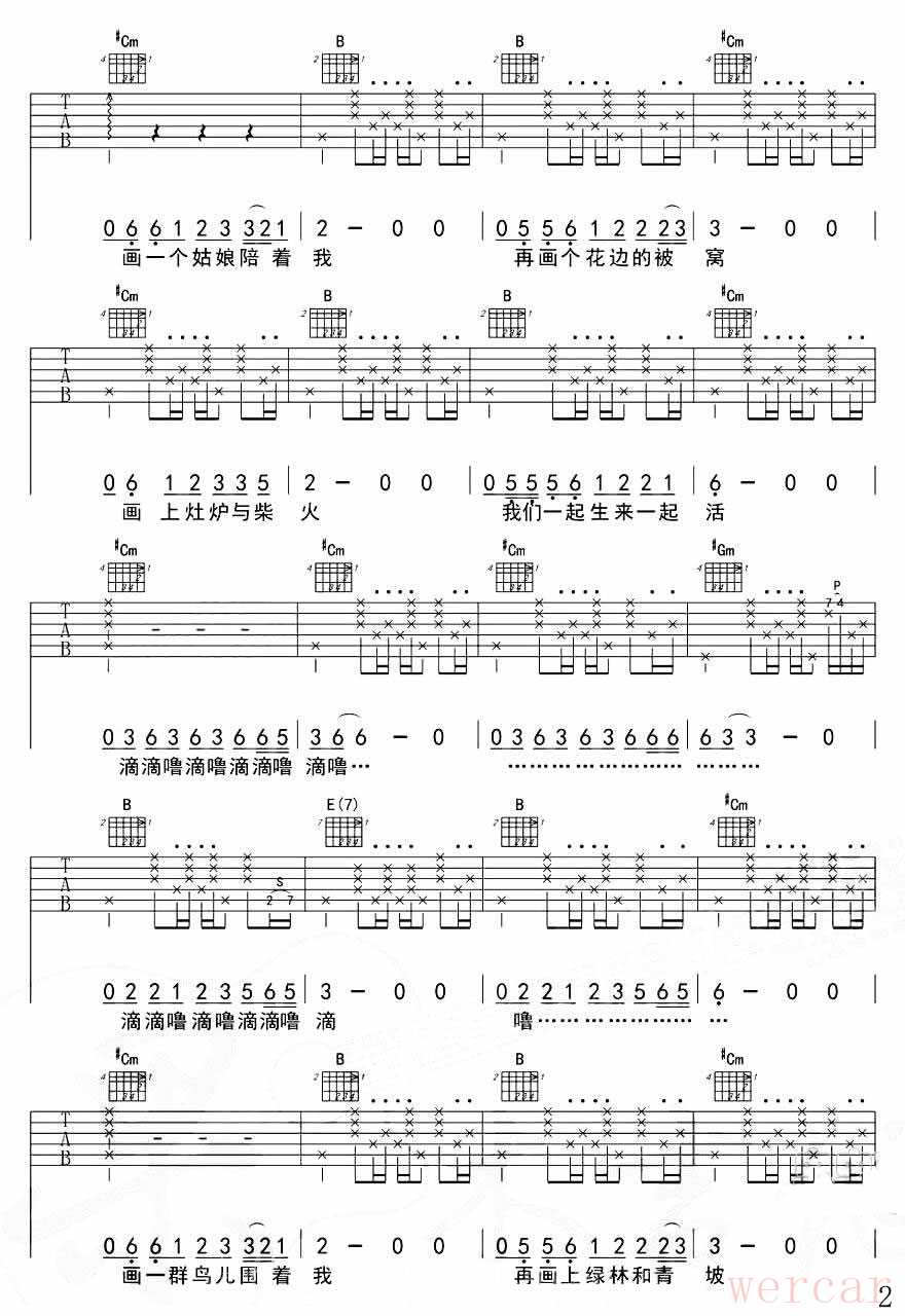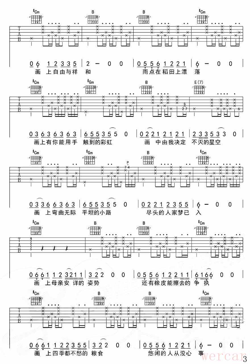 同学们可以对照谱子和音频来演奏(变调夹夹3品),以下是赵雷的《画》音频欣赏: