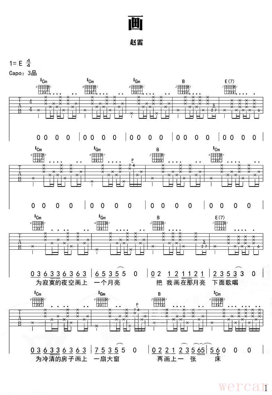 赵雷的《画》是一首非常受欢迎的歌曲,很多吉他爱好者都希望弹唱。不过,关于《画》的官方、完整、准确的吉他谱(尤其是包含指弹和弹唱两种形式且经过编配的)相对较少,网络上流传的版本往往是由爱好者自行编配的。