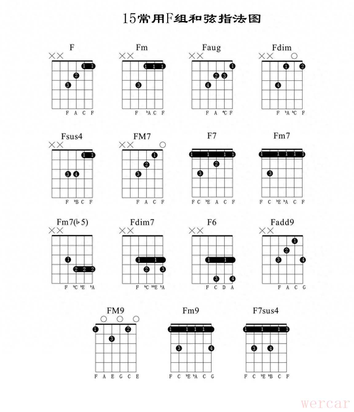 一、十五个F组和弦指法图