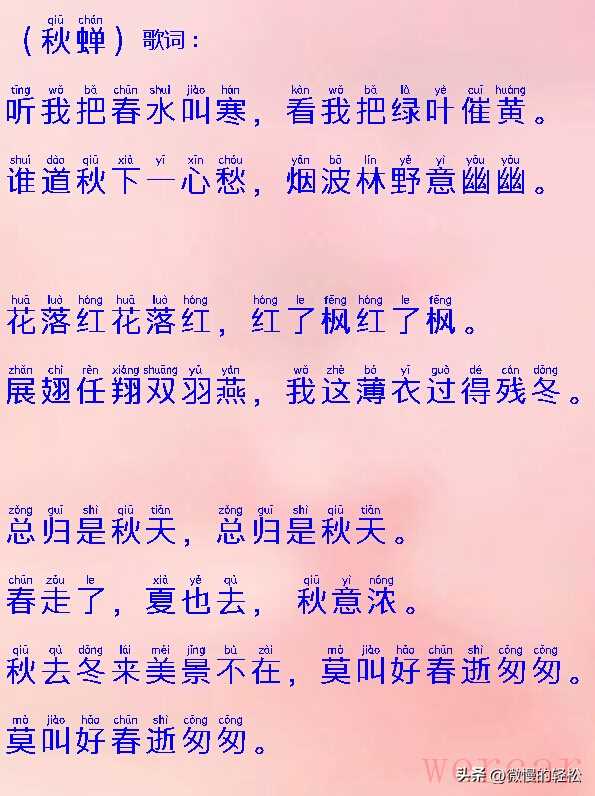 《秋蝉》是台湾民歌中非常著名的一首由著名音乐人李子恒作词作曲,徐晓菁、杨芳仪演唱的歌曲。1980年凭借此首歌曲获金鼎奖作曲奖。此后有大量的歌手翻唱过此曲,著名的有刘文正、费玉清等。