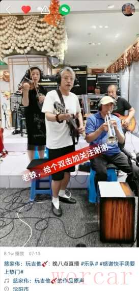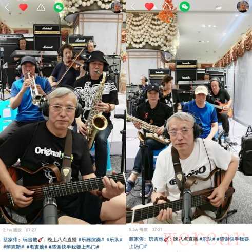 “老铁们,大家好,红心点起来!”每晚八点,在慈家伟(快手ID:1329690996)的快手直播间,八九十年代的华语经典旋律,会如约响起。弹吉他的大叔甩动着飘逸的银发,拉小提琴的阿姨“表情管理”出色。身体随着节奏摆动,尽情的醉心于旋律中,时而动感,如热情的沙漠;时而抒情,念万水千山走过。