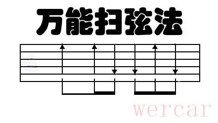 这个万能扫弦法也是吉他界默认的能够适应大部分歌曲的扫弦法,如果不想枯燥的一下一下的向下扫弦的话可以试试这个方法,弹奏的方法也很简单下、下上、上下上。扫弦前期的练习一定要放慢节奏,先掌握好弹奏的技巧,练到熟能生巧的时候再结合节奏,把扫弦技巧与节奏结合在一起,就可以弹奏出歌曲的节奏感啦。